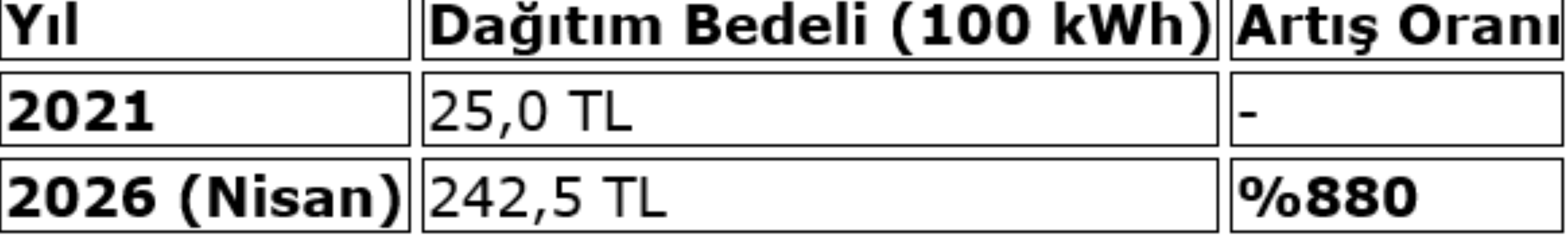 Bugün ortaya çıkan tablo son derece çarpıcıdır: 1 kWh elektrik için yaklaşık 49 kuruş enerji bedeli ödenirken, aynı elektriğin dağıtımı için bunun yaklaşık 5 katı, yani 2,4 TL tahsil edilmektedir.