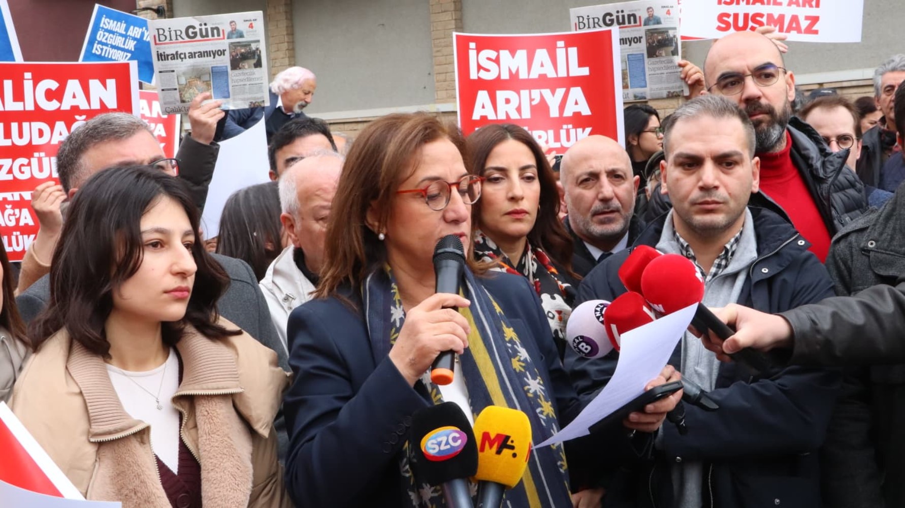 BirGün Ankara Temsilcisi Nurcan Bilge Gökdemir açıklamalarda bulundu. Gökdemir, “İsmail Arı, bu düzende tutuklanan ilk gazeteci değil. Eğer dayanışma ve itiraz gelişmezse, ne yazık ki son da olmayacak. Biz gazeteciler mesleğimizi Anayasa’da teminat altına alınan basın özgürlüğü kapsamında, toplumun doğru bilgiye ulaşması amacıyla yapıyoruz. Ancak görüyoruz ki hukuki güvenceden mahrumuz. Hemen her gün soruşturmaların, davaların, cezaların, gözaltıların ve tutuklamaların muhatabı oluyoruz” dedi. Öte yandan basın üzerindeki baskılara karşı halkın demokrasiye ve basın özgürlüğüne sahip çıkan iradesini vurgulayan Gökdemir, “İsmail Arı’nın, Alican Uludağ’ın, Merdan Yanardağ’ın ve diğer tüm tutuklu gazetecilerin özgürlüklerine kavuşması, aynı zamanda bir daha hiçbir gazetecinin cezaevine atılmaması için dayanışmanın büyütülmesi zorunlu ve artık ertelenemez bir ihtiyaçtır. Tutuklu tüm gazeteciler bir an önce serbest bırakılmalı, gazeteciliğin yönelik baskı ve tehditler bir an önce son bulmalıdır. Bir kez daha haykırıyoruz: Gazetecilik suç değildir. Gazetecilerin yeri cezaevleri değildir. Sessizlik ve sansür, demokrasiyi öldürür” ifadelerini kullandı.