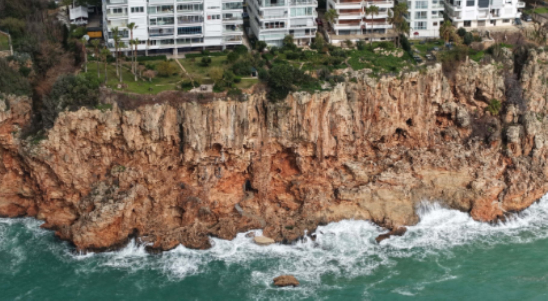 Antalya'nın Konyaaltı Beach Park’tan Lara kıyılarına uzanan ve yüksekliği 40 metreye kadar ulaşan ‘Tufa Kıyı Falezi’ olarak bilinen benzersiz falezler, son günlerde izinsiz yapılar nedeniyle gündemde.