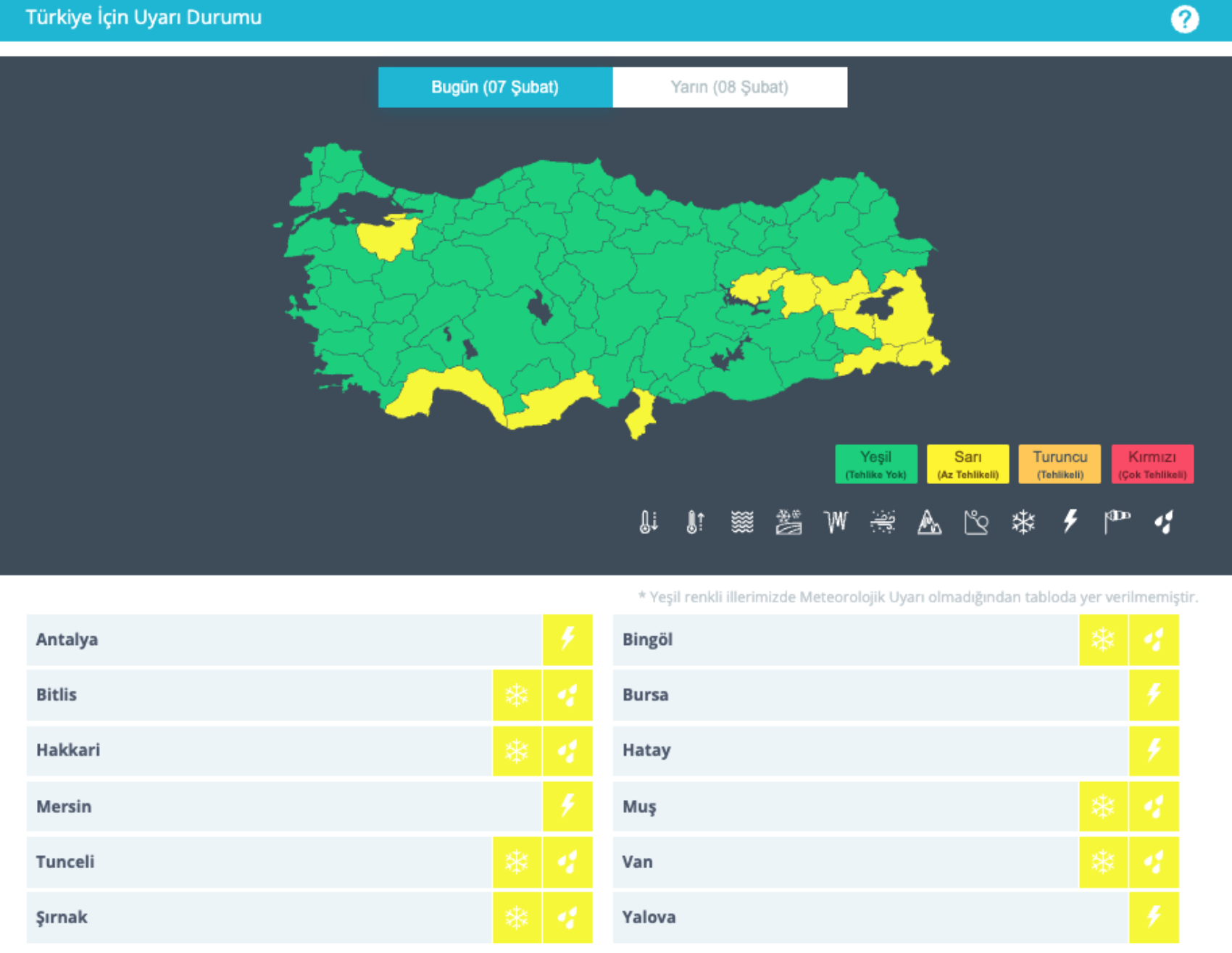 MGM'nin raporunda 12 kent için sarı kodlu uyarıda bulunuldu.