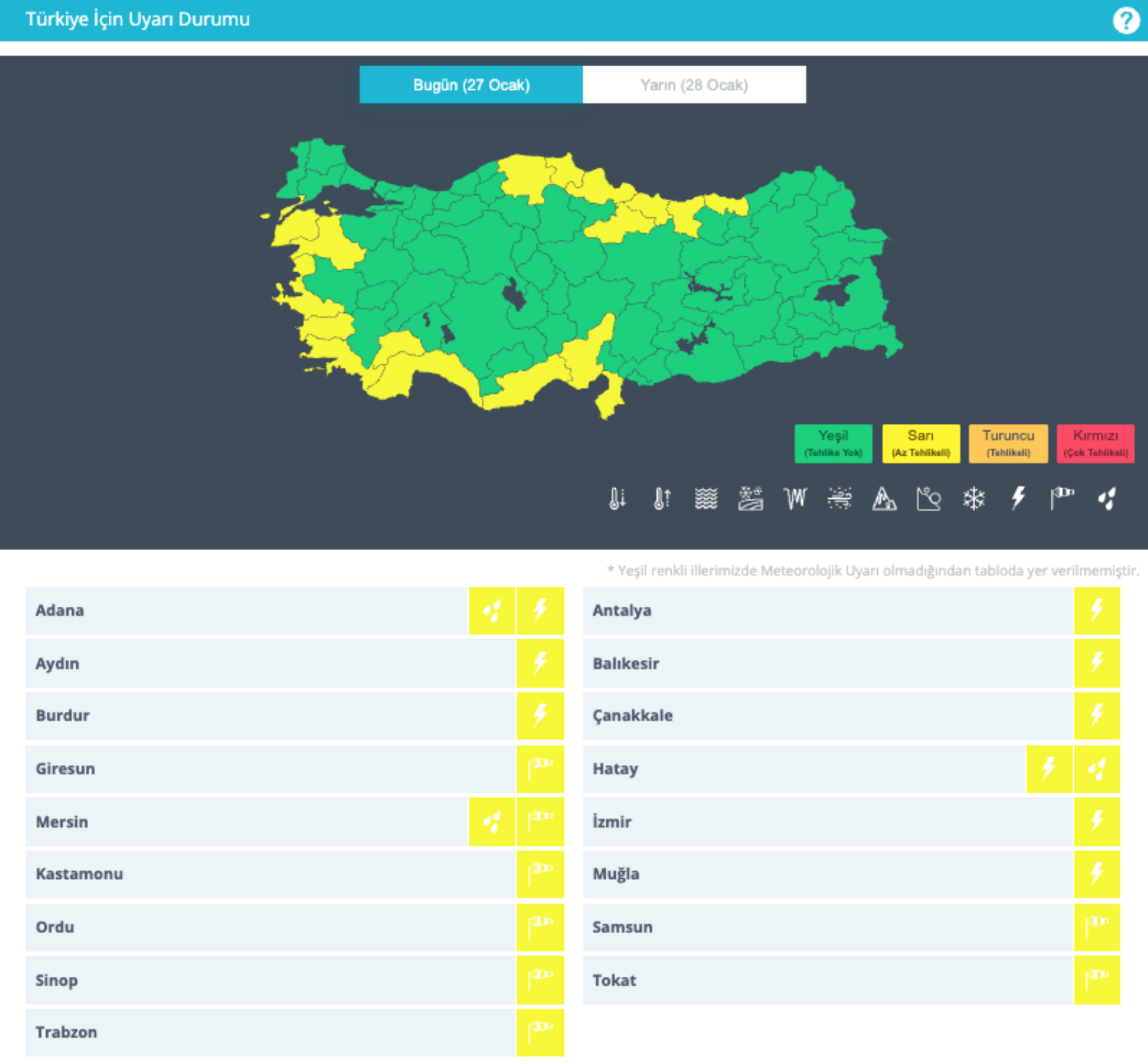 MGM'nin raporunda 17 kent için sarı kodlu uyarı yapıldı.