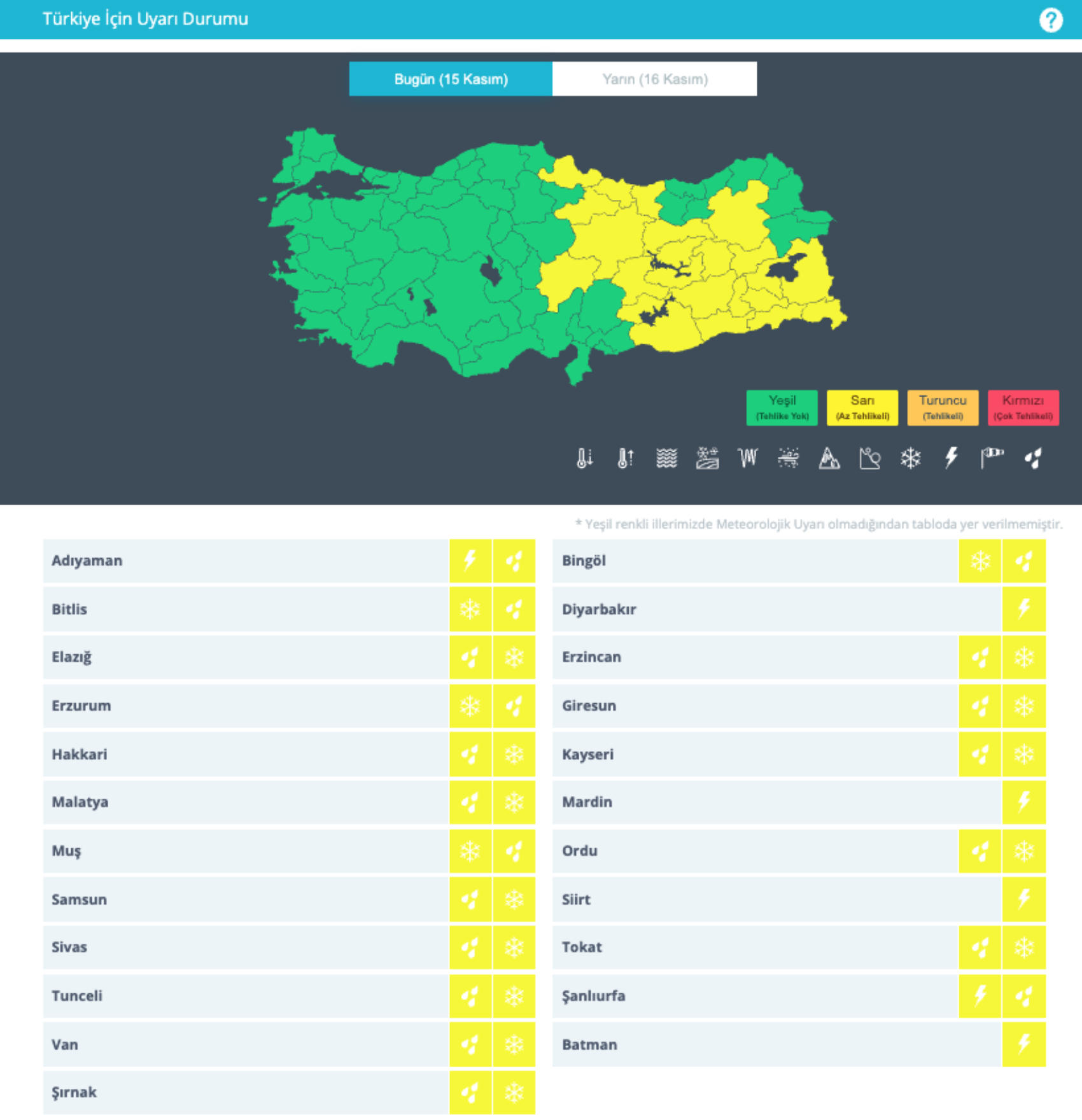 MGM'nin raporunda 23 kent için sarı kodlu uyarıda bulunuldu.