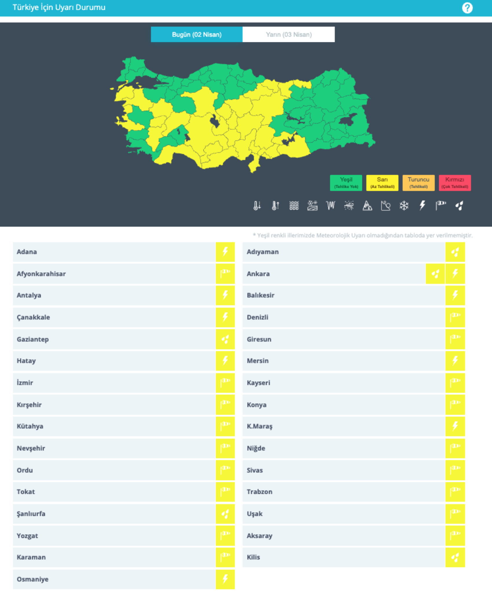MGM'nin raporunda 31 kent için sarı kodlu uyarı yapıldı.