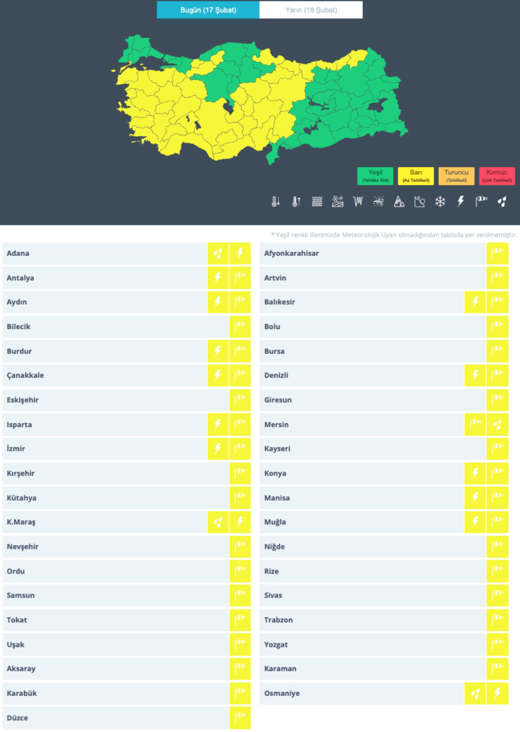 MGM'nin raporunda 39 kent için sarı kodlu uyarı yapıldı.