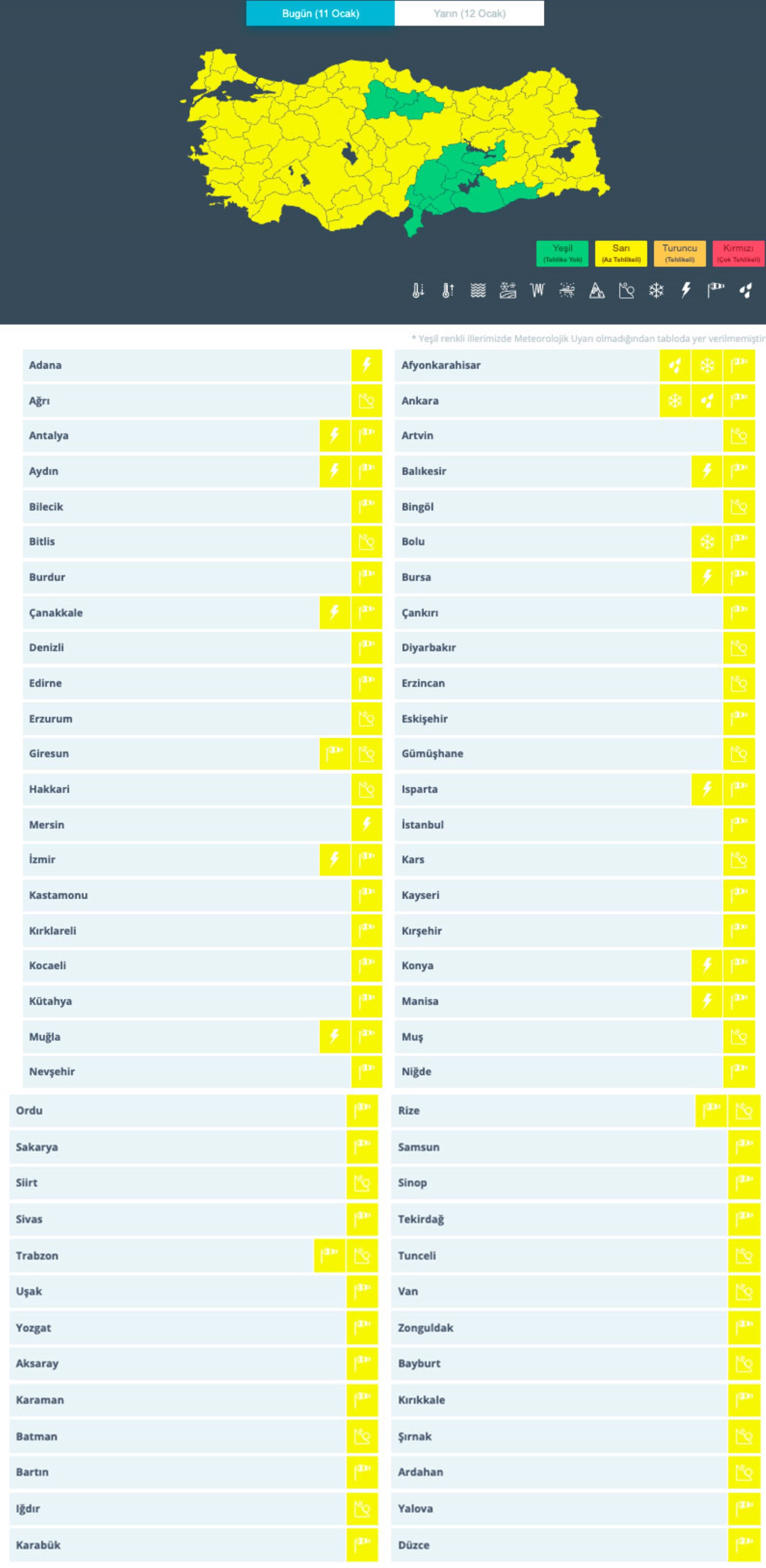 MGM'nin raporunda 68 kent için sarı kodlu uyarı yapıldı.