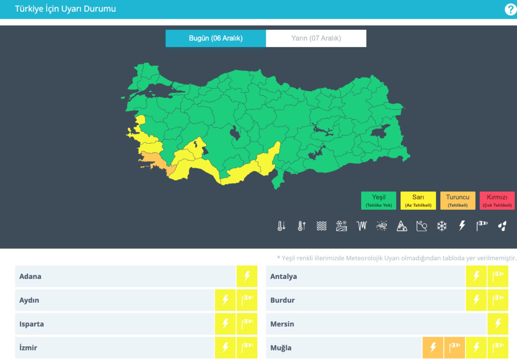 7 KENTE SARI, 1 KENTE TURUNCU KODLU UYARI
