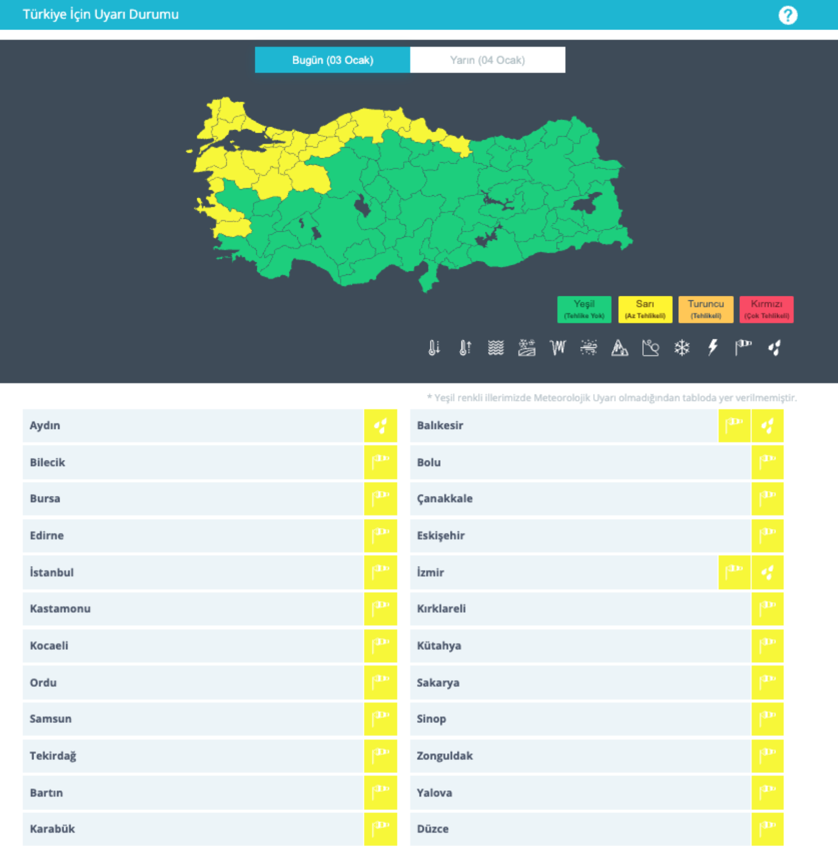 MGM'nin raporunda aralarında İstanbul'un da bulunduğu 24 kent için sarı kodlu uyarıda bulunuldu.