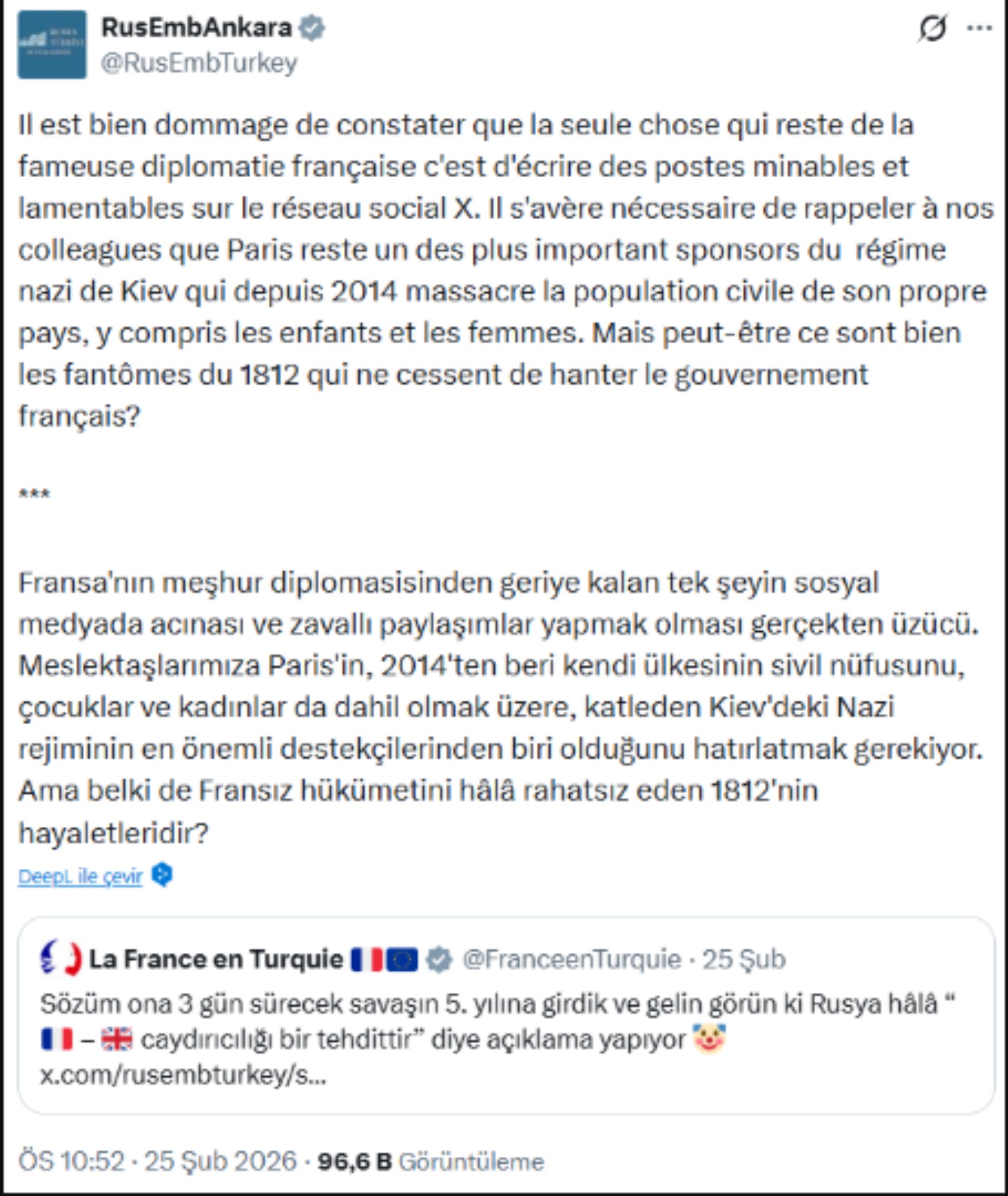 Fransa ve Rusya büyükelçilikleri X üzerinden Türkçe kavga yaptı: Gerçekten üzücü