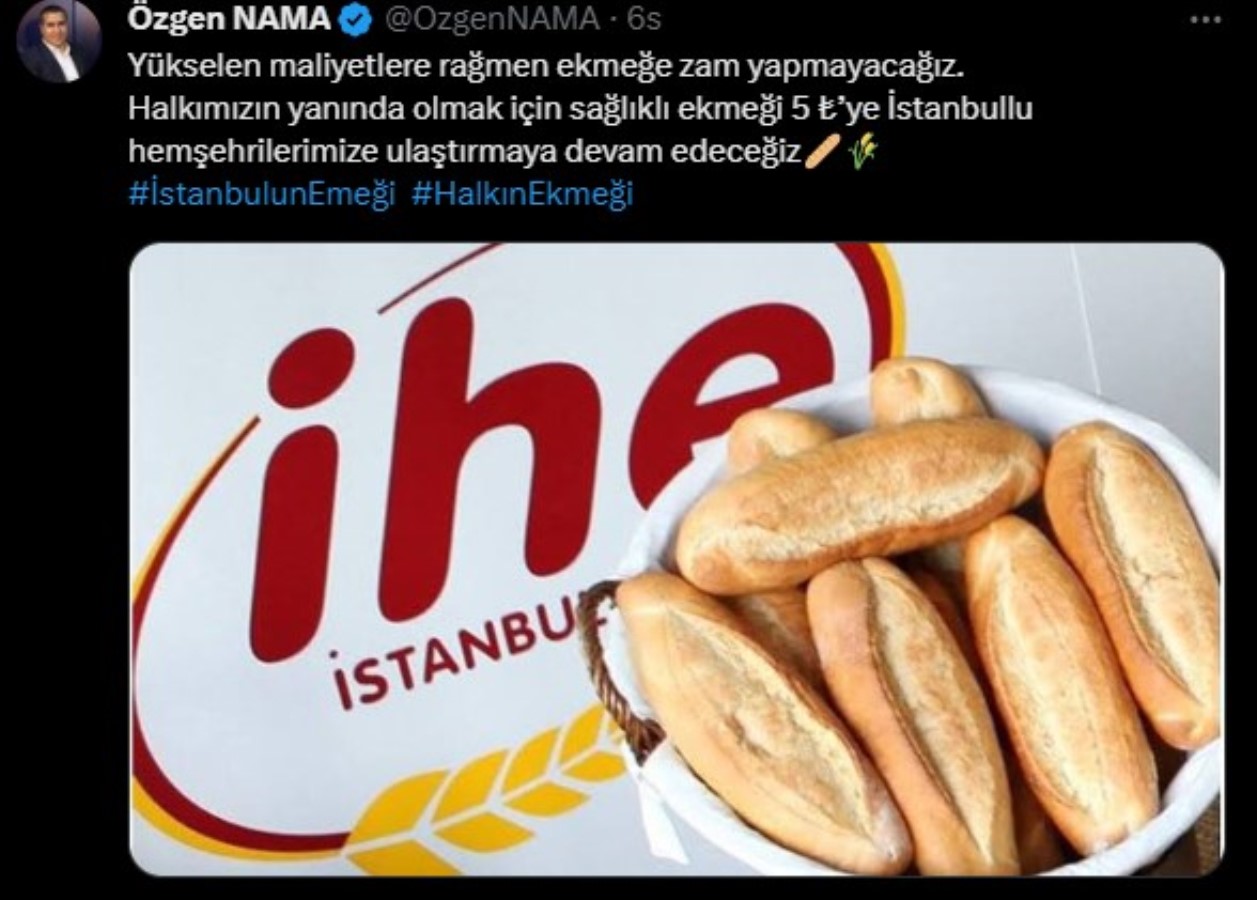 "Yükselen maliyetlere rağmen ekmeğe zam yapmayacağız. Halkımızın yanında olmak için sağlıklı ekmeği 5 TL’ye İstanbullu hemşehrilerimize ulaştırmaya devam edeceğiz."