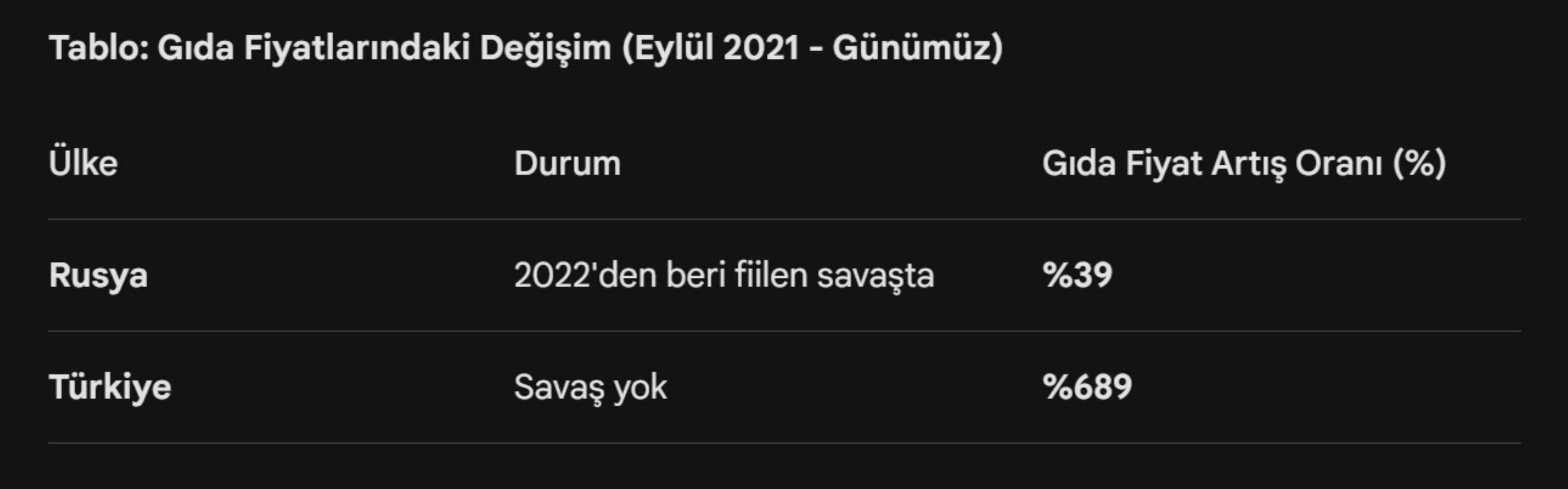 Bu veri, Türkiye’deki gıda enflasyonunun savaşın yıkıcı etkilerinden çok daha ağır bir tablo oluşturduğunu kanıtlıyor.