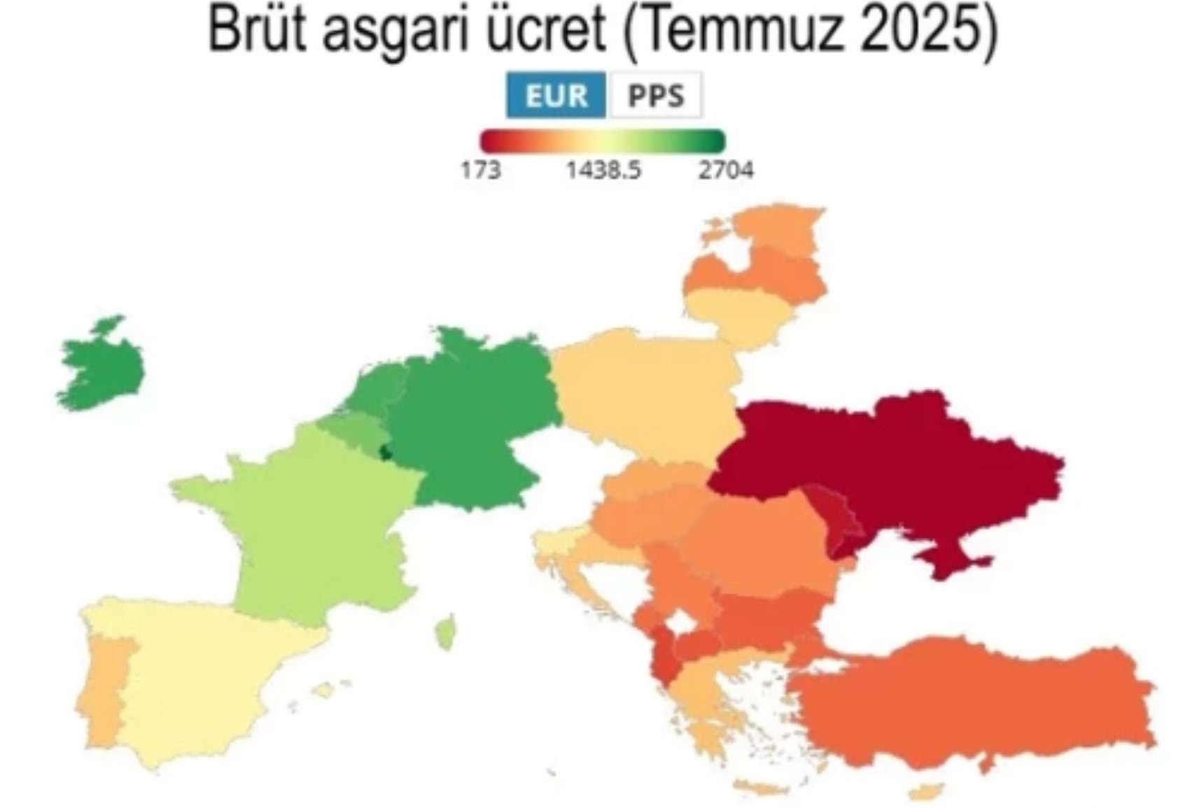 AVRUPA'DA ASGARİ ÜCRETİN YÜKSEK VE DÜŞÜK OLDUĞU ÜLKELER