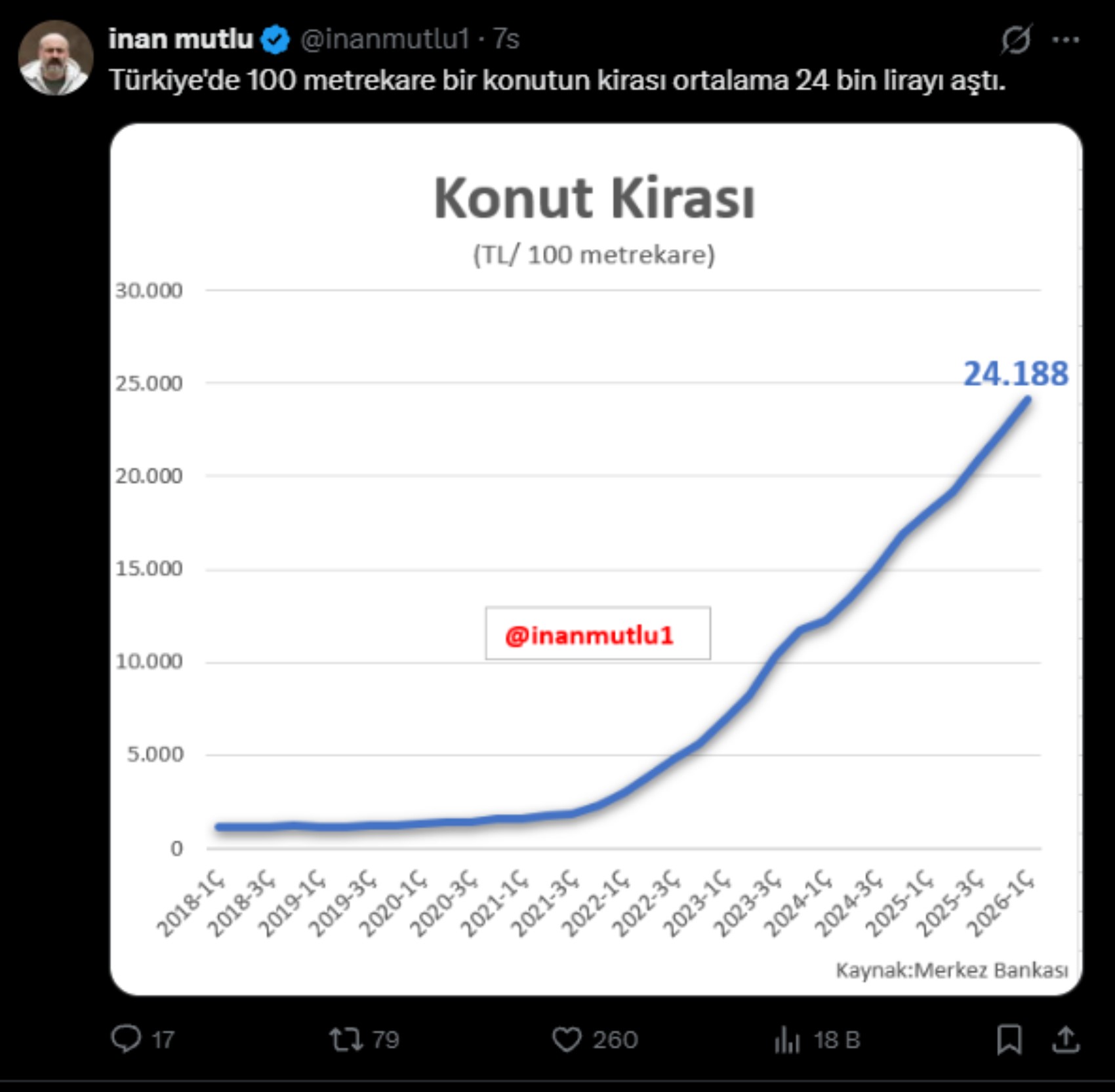 İktisatçı İnan Mutlu tarafından paylaşılan veriler, konut