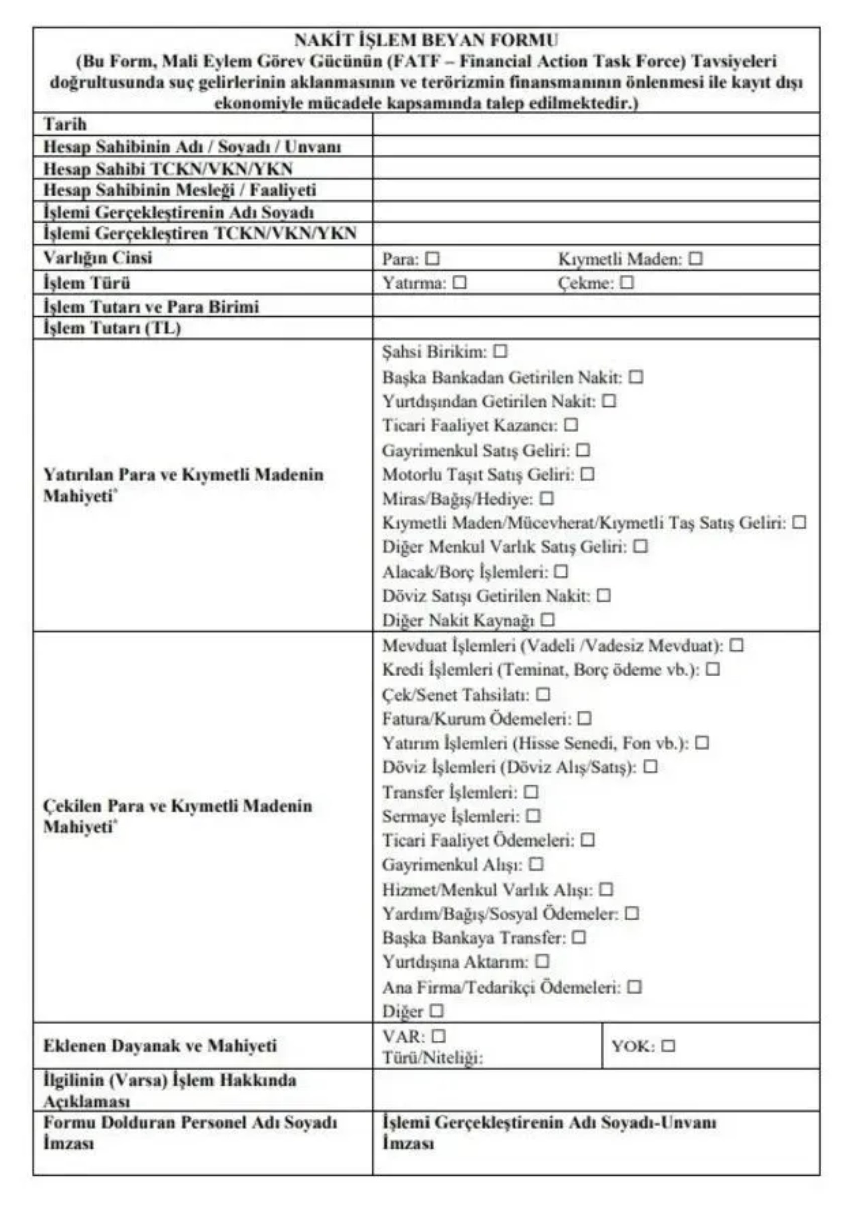 Yapılan düzenleme, yalnızca 400 bin TL sınırıyla sınırlı kalmıyor. Bunun üzerinde, özellikle çok yüksek tutarlı işlemler için aşamalı yeni yükümlülükler devreye alınacak. 2 milyon TL ile 20 milyon TL arasında gerçekleşen para aktarımlarında kullanıcıların ‘Nakit İşlem Beyan Formu’ doldurması gerekecek. 20 milyon liralık transferler ve üzeri işlemlerde ise, gönderilen paranın kaynağına ilişkin ek bilgi veya belge sunulması şartı aranacak.