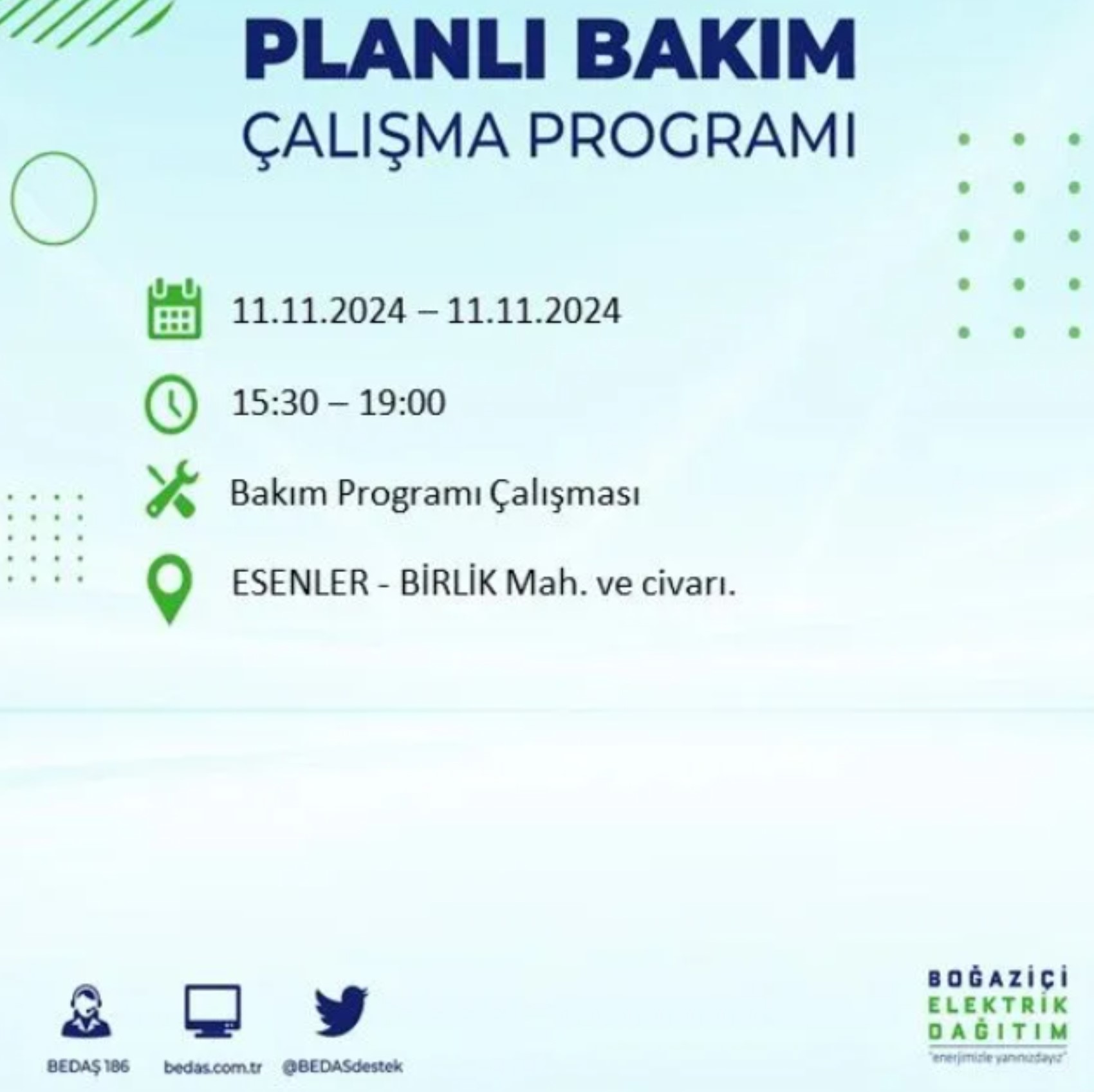BEDAŞ açıkladı... İstanbul'da elektrik kesintisi: 11 Kasım'da hangi mahalleler etkilenecek?