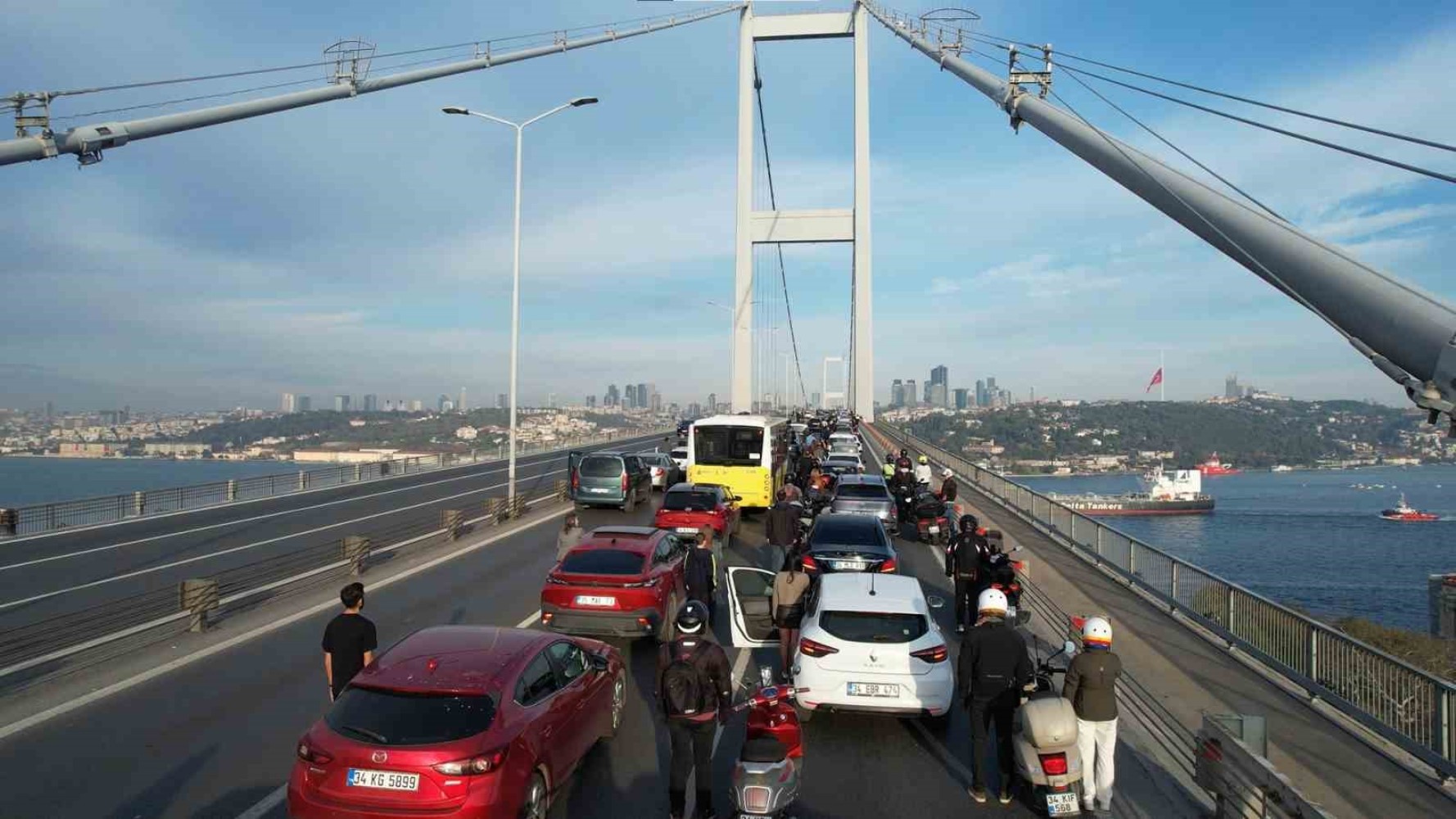 Sabah saatlerinde 15 Temmuz Şehitler Köprüsü’nde seyreden sürücüler, 09.05'te sirenlerin çalmasıyla birlikte araçlarını olduğu yerde durdurarak saygı duruşunda bulundu.