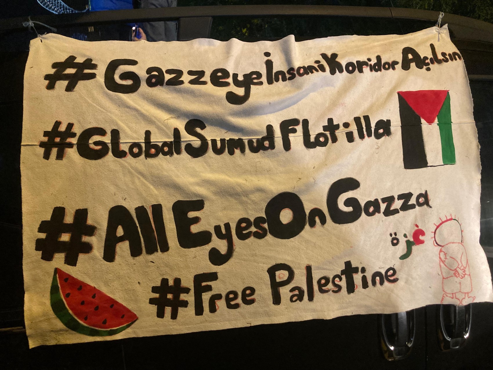 Eyleme çok sayıda vatandaş katıldı. Eylemde Filistin bayrakları açıldı, ayrıca Sumud Filosuna destek amaçlı sloganlar atıldı.