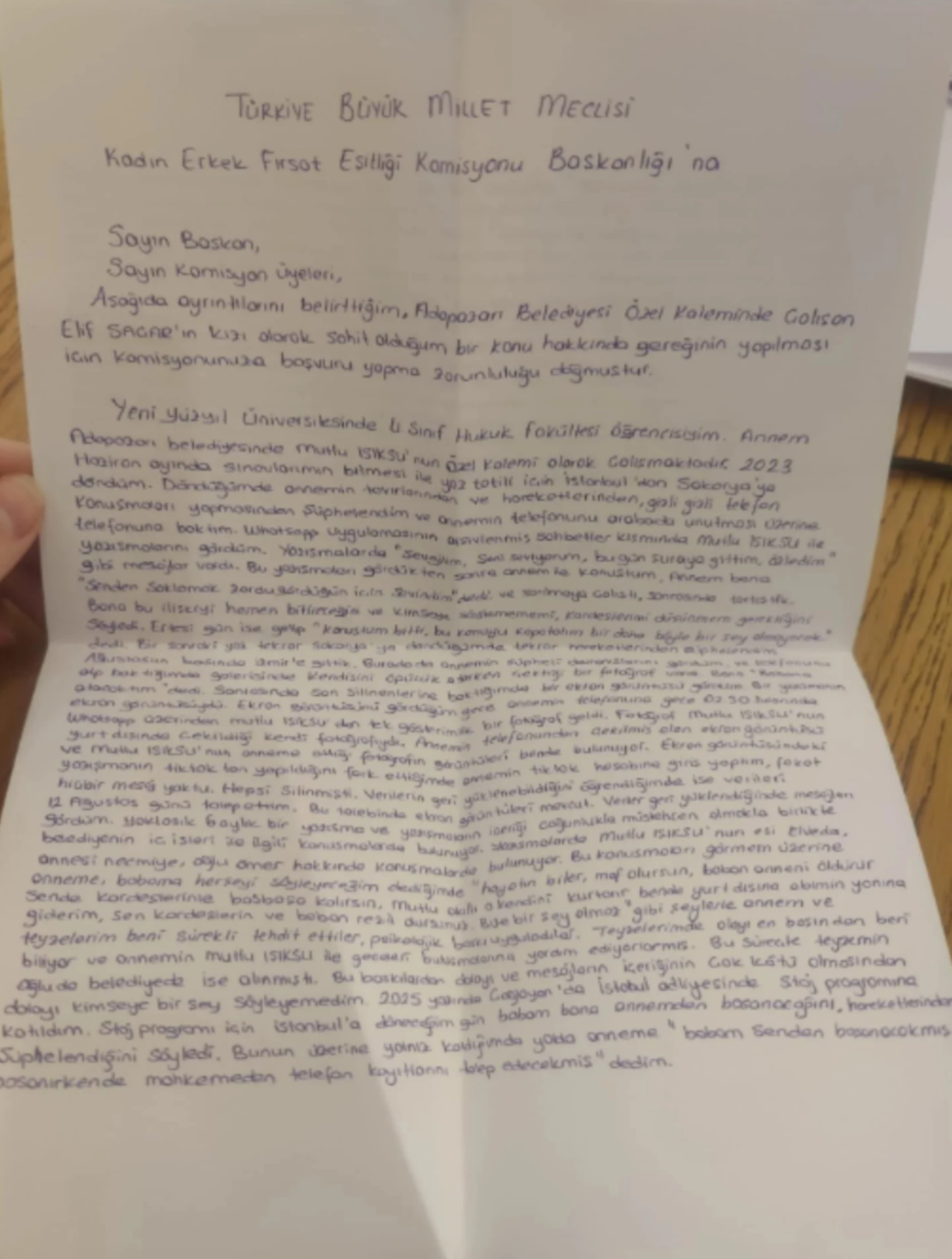 E.S.’nin üniversite öğrencisi kızı C.S. Kamu Denetçiliği Kurumu toplantısında, Kamu Başdenetçisi Mehmet Akarca’ya annesinin Belediye Başkanı Mutlu Işıksu ile yaptığı yazışmaları gördüğünü söylemişti.