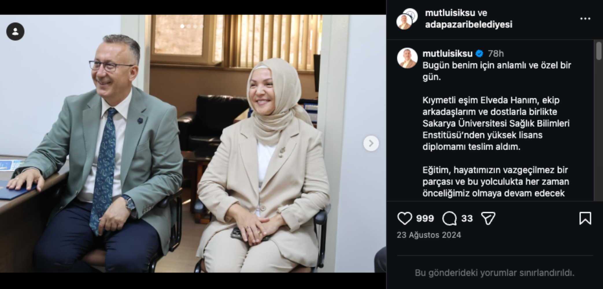 Sakarya’da AKP’li Adapazarı Belediye Başkanı Mutlu Işıksu ile 8 yıldır belediyede Özel Kalem Müdürü olarak görev yapan E.S. arasındaki yasak aşk iddiası gündeme oturmuştu.