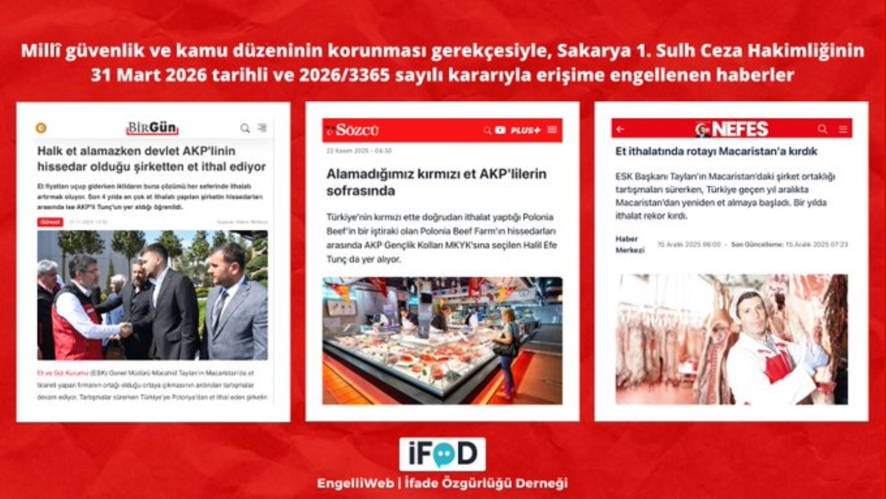 Et ve Süt Kurumu’nun ithalatının yarısından fazlasını yapan Polonia Beef şirketi ile AKP MKYK üyesi Halil Efe Tunç arasındaki ticari ilişkiyi konu alan haberler, Sakarya 1. Sulh Ceza Hakimliğinin kararıyla erişime kapatıldı. Mahkeme karara gerekçe olarak "millî güvenlik ve kamu düzeninin korunmasını" gösterdi.
