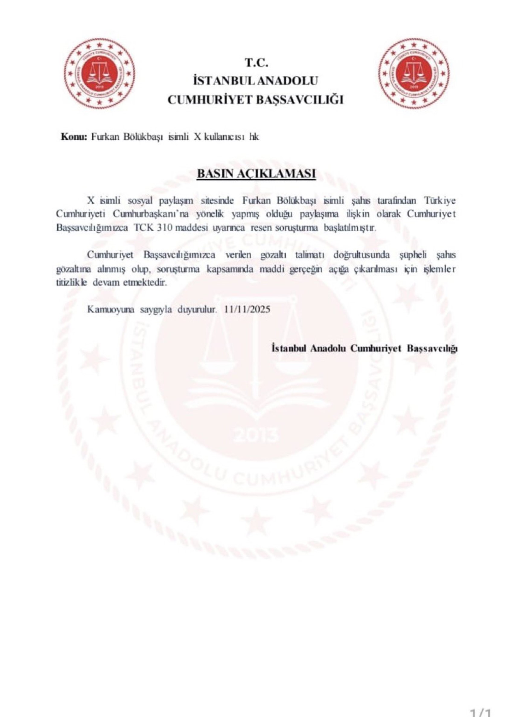 Aktrol olarak bilinen Furkan Bölükbaşı, bir sosyal medya hesabında yer alan “10 Kasım 2025 tarihli M.Kemal'in ölüm yıldönümü resmi merasimini biraz takip ettim. Tayyip Erdoğan ile Adalet ve Kalkınma Partisine hikmet-i ilahiye gereği çok sağlam bir yenilgi tattırılacağı kanaatim kuvvetlendi...” ifadesinin yer aldığı paylaşımı alıntılayarak, “Menderes'in sonunu Kemalizme yaptığı şirinlikler getirmişti. İnşallah Müslümanların mevcut iktidarı da aynı akıbete uğramadan kendine çeki düzen verir” sözlerini yazdı.