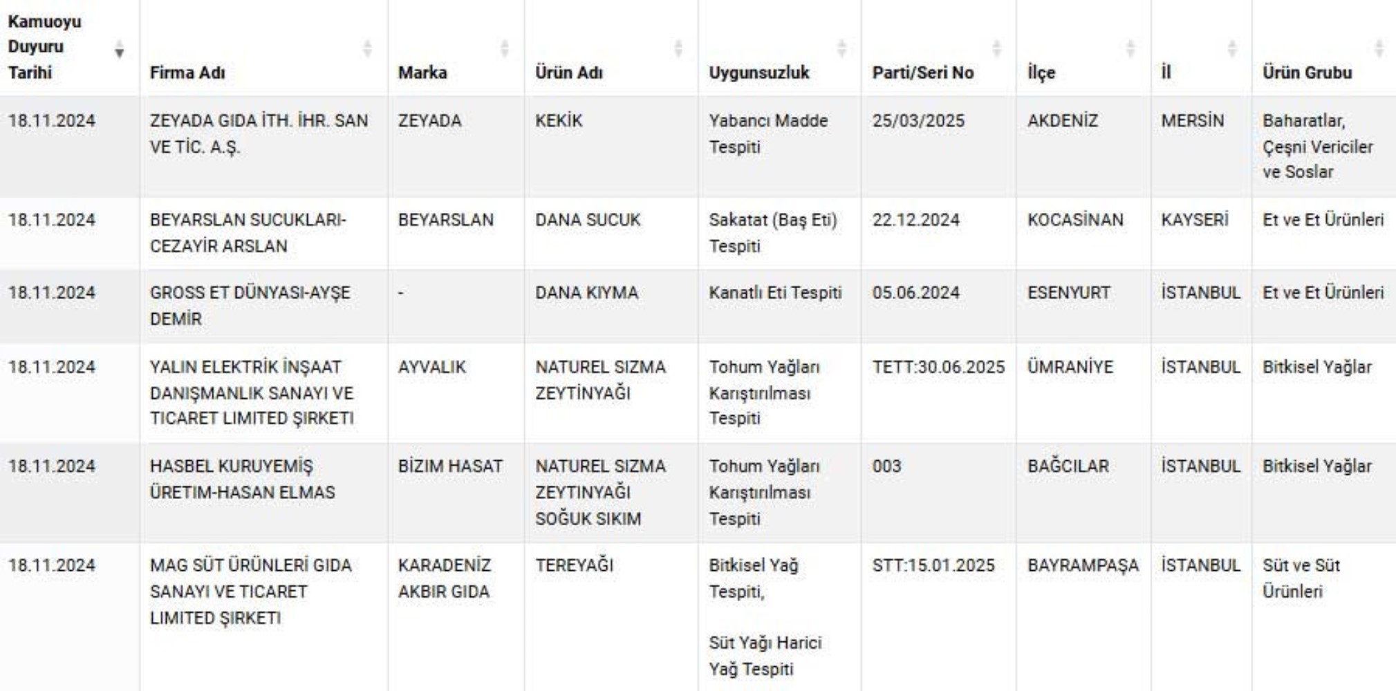 "guvenilirgida.tarimorman.gov.tr" adresi üzerinden ifşa edilen, gıdada hile yapan son markalar ve ürünleri yayınlandı. İstanbul’dan dört firma da listeye girdi.