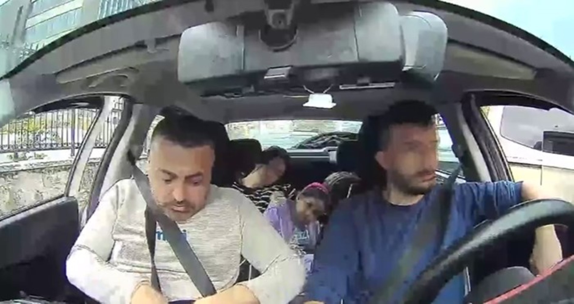 Böcek ailesinin taksideki görüntüleri araç içi kamerasına yansıdı: Aile üyelerinin fenalaştığı görülüyor