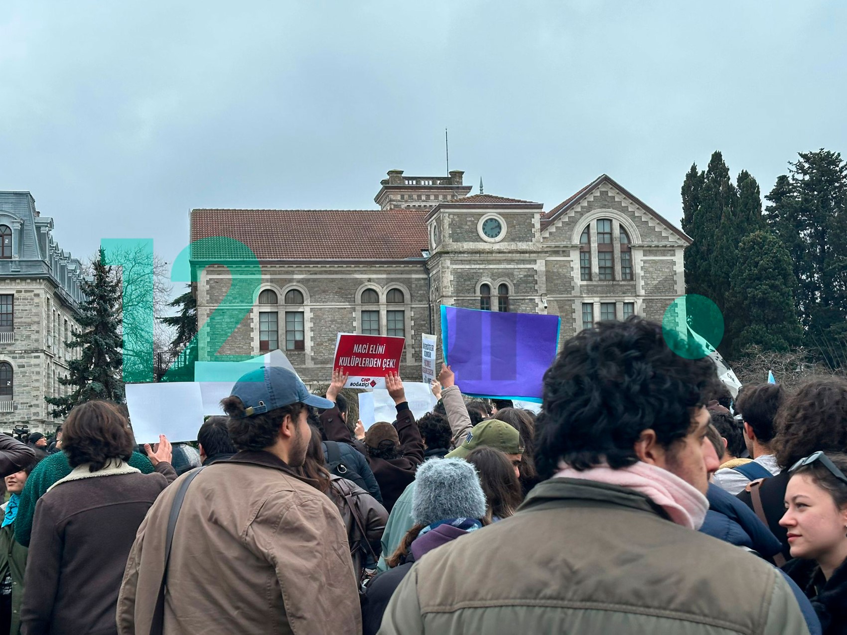 Boğaziçi Üniversitesi’nde kulüp odalarının polis eşliğinde boşaltılmasına tepki gösteren öğrenciler, ÖTK çağrısıyla Güney Meydan’da bir araya geldi; kulüp odalarına yürüyen öğrenci grubu polis ablukasıyla karşılaştı.