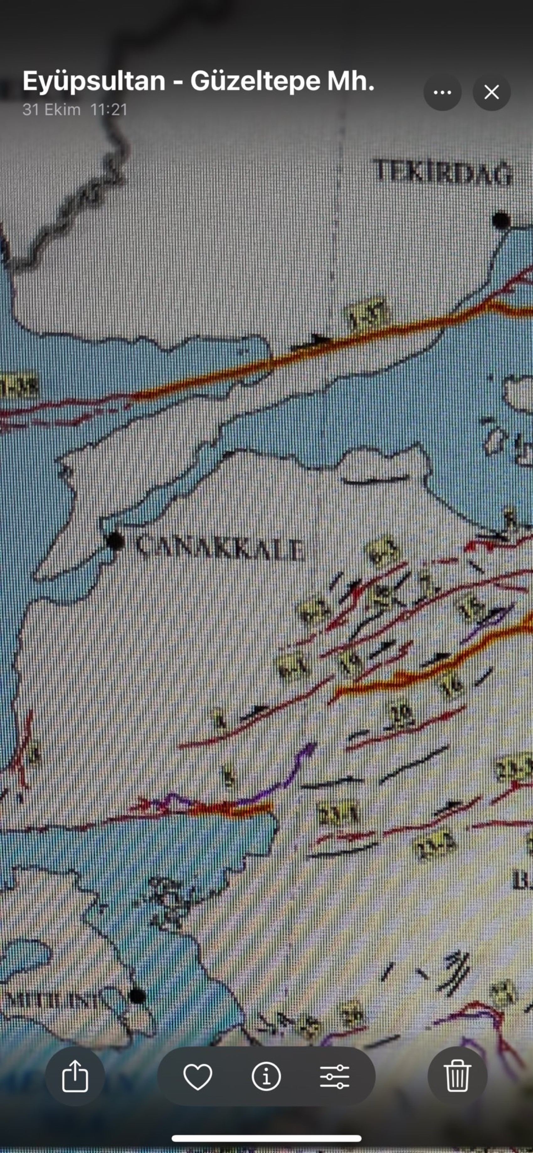 Görür, haritalı uyarısında Kuzey Anadolu Fay zonunu işaret ettti. Depremin KAF'ın Marmara Bölgesi'nde kırılması beklenen kesmini etkileyeceğini söyledi. Görür, fay hatlarını gösteren haritayı da paylaşarak şunları yazdı: