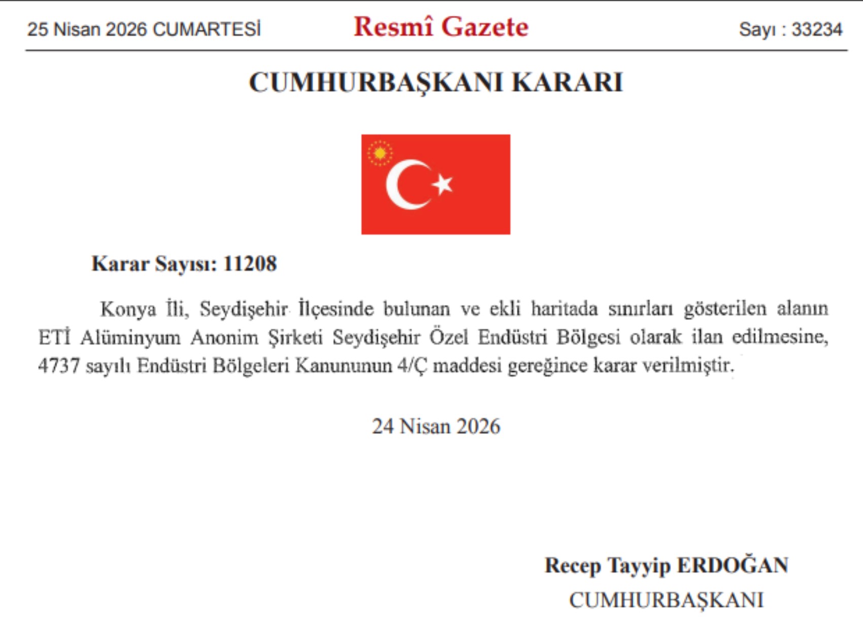 Konya Seydişehir’de Yandaş Cengiz Holding’e ait Eti Alüminyum tesislerinin bulunduğu alan “özel endüstri bölgesi” ilan edildi. Karar şirket için vergi muafiyeti ve çeşitli teşvikleri beraberinde getiriyor.