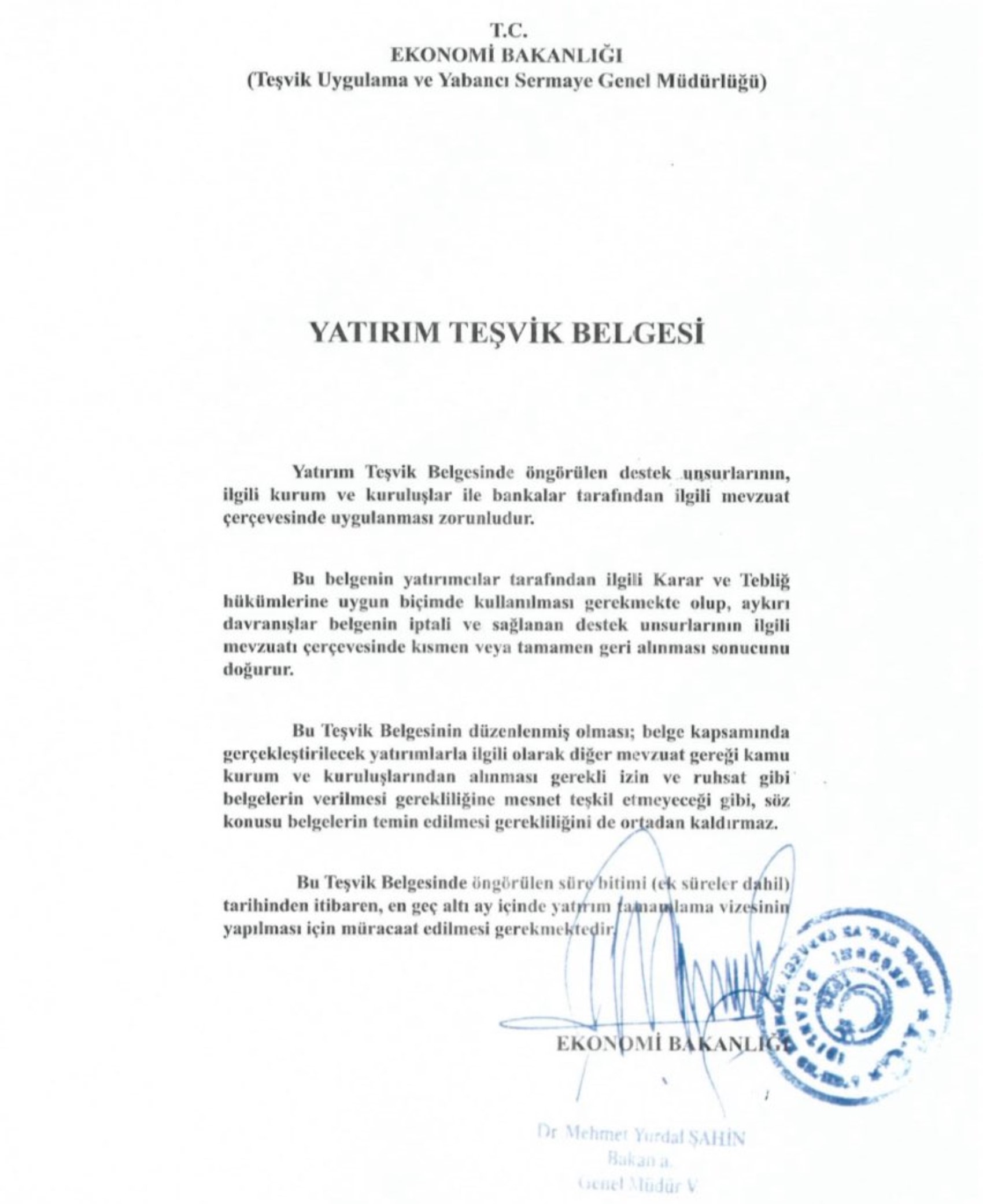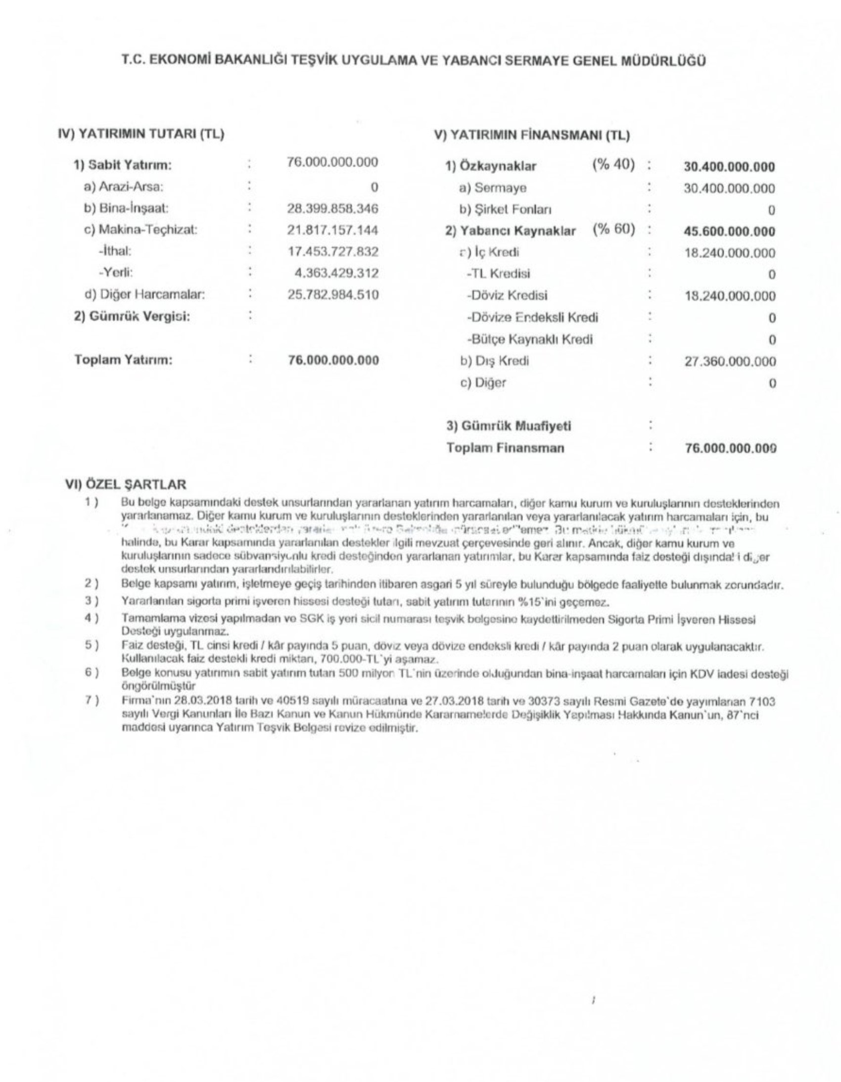 Kaynak: Ekonomi Bakanlığı-Akkuyu Nükleer A.Ş. Teşvik Belgesi"