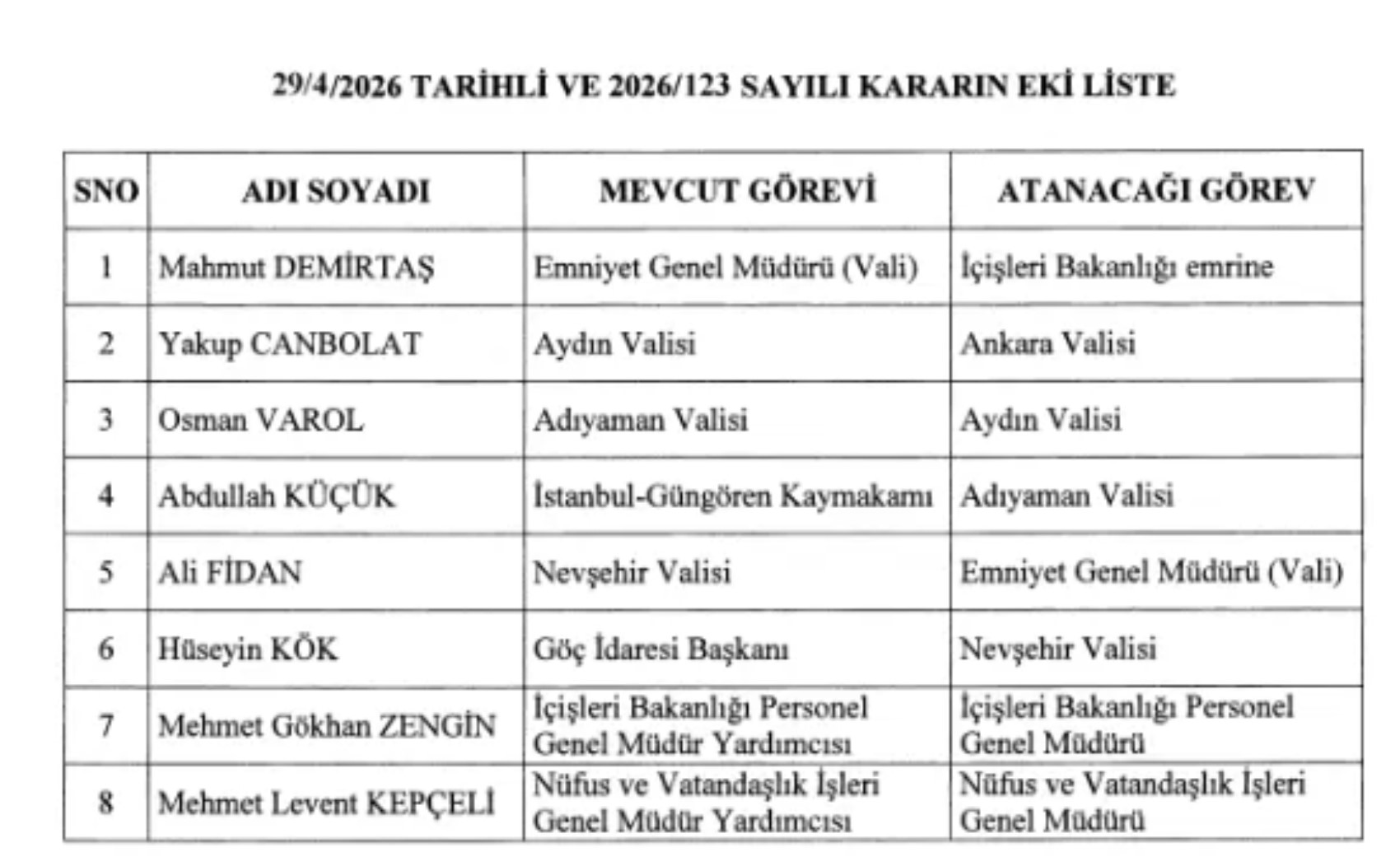 Atama kararları sadece genel müdürlükle sınırlı kalmadı, Ankara ve Aydın dahil olmak üzere birçok ilin valisi değişti. Ankara Valiliği’ne Yakup Canbolat atandı. Bu kapsamlı rotasyonla birlikte güvenlik bürokrasisinde yeni bir dönem başlamış oldu.