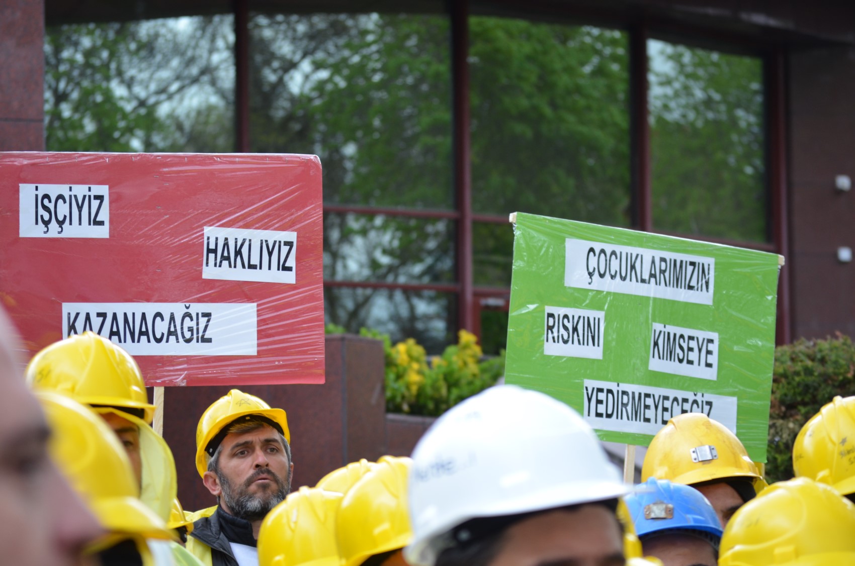 Bizim karşımıza, şurada biz 110 kişi madenciyiz. 500 tane çevik kuvvet geliyor. Apar topar coplayaraktan arkadaşlarımızı karakola alıyorlar. Bugün Holding'e gittik. Sayımız 50 kişiydi. Holding'in önündeki çevik kuvvet bizim 5 katımızdı. Sorsan bizi koruyorlar. Bizi kimden koruyorlar? Biz çalmadık ki. Devlet çalanı değil, bizi korusun. Devletimiz bizim de devletimiz.