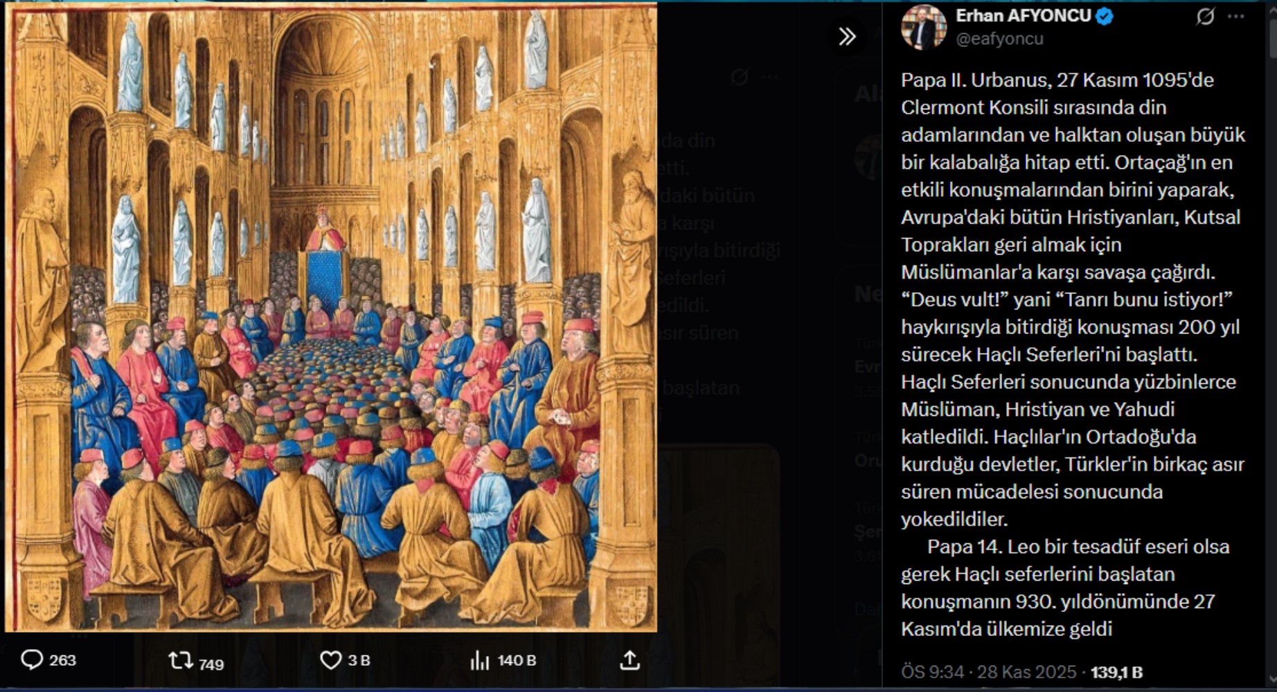 Erhan Afyoncu'dan 'Papa, Haçlı Seferlerini başlatan konuşmanın yıldönümünde geldi' mesajı: Tesadüf olsa gerek