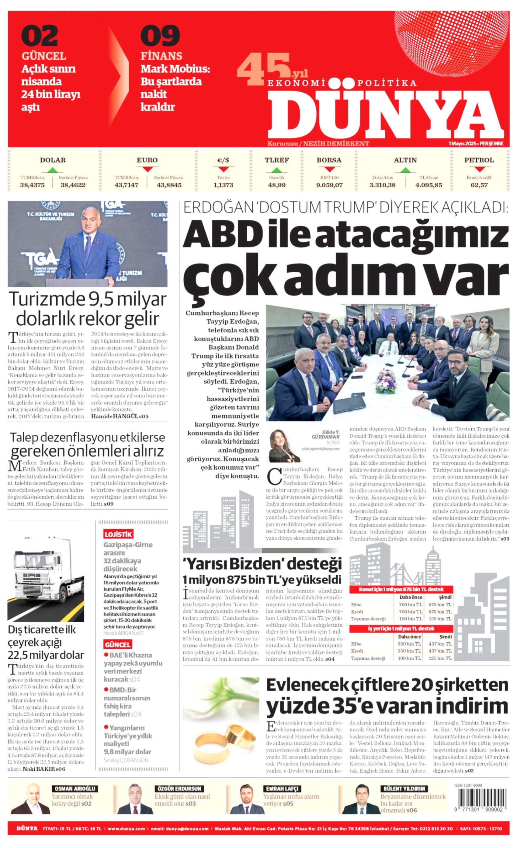 1 Mayıs 2025 tarihine ait ulusal gazete manşetlerini 12punto'dan takip edebilir, gazetelerin birinci sayfalarını ve haber başlıklarını okuyabilirsiniz. İşte 1 Mayıs 2025 tarihli gazete manşetleri...