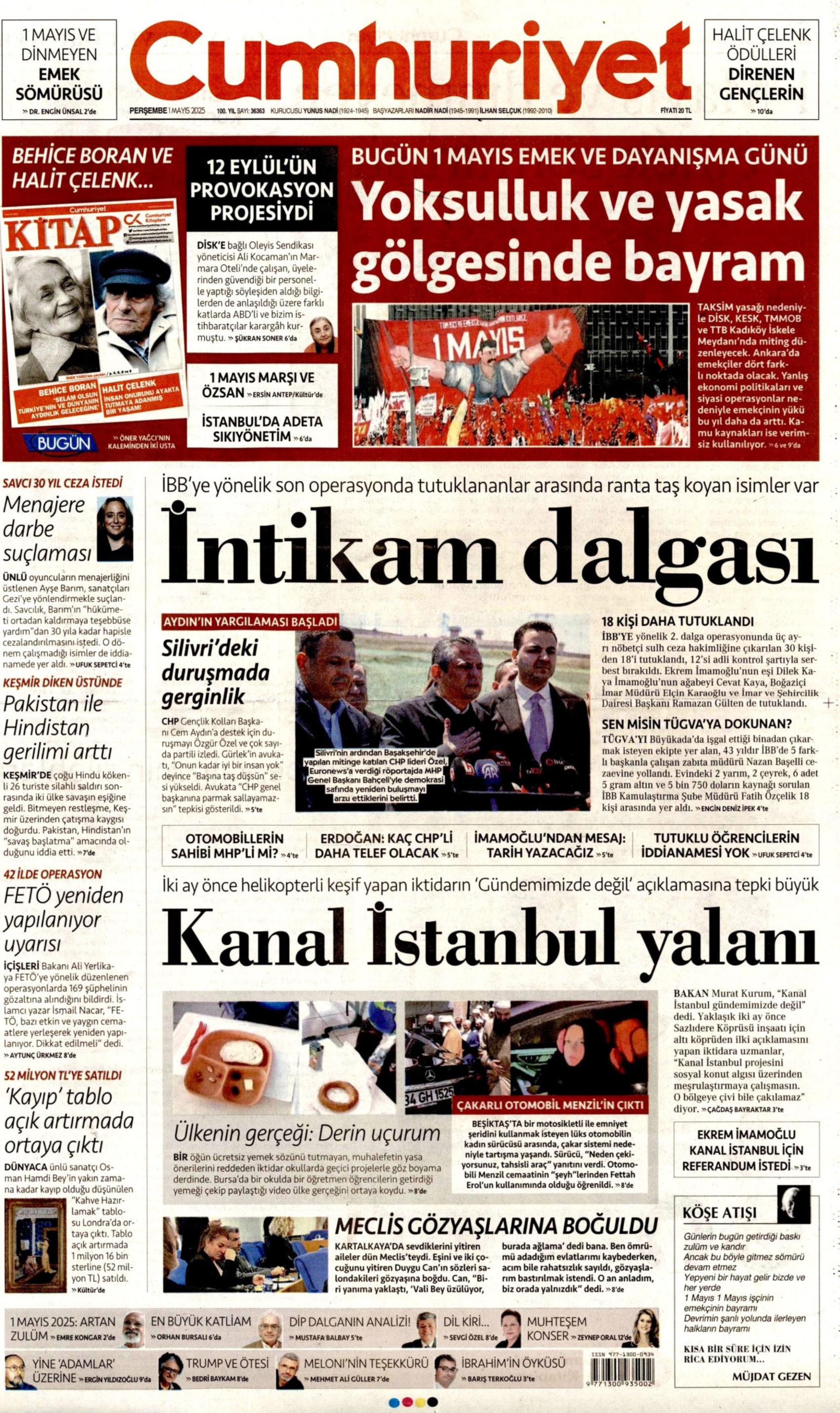 1 Mayıs 2025 gazete manşetleri: ‘AKP’liysen suç işleme özgürlüğün var!’