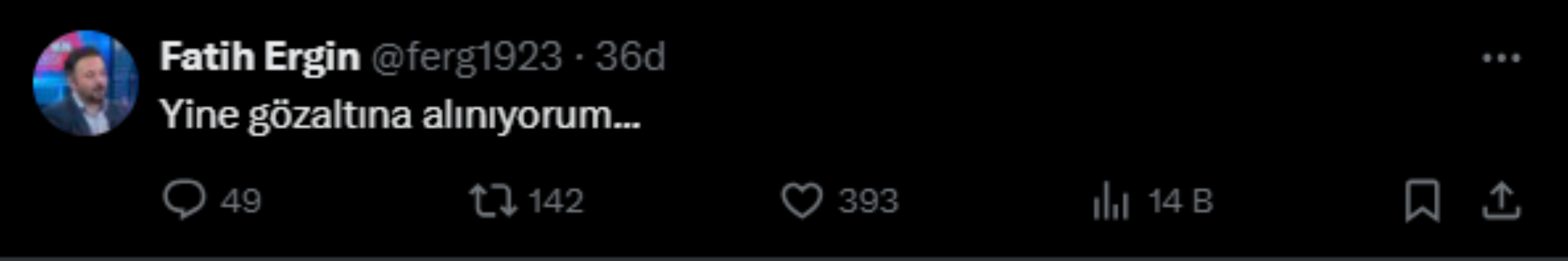 Ergin, kişisel hesabından yaptığı bir paylaşımla yine gözaltına alındığını duyurdu.