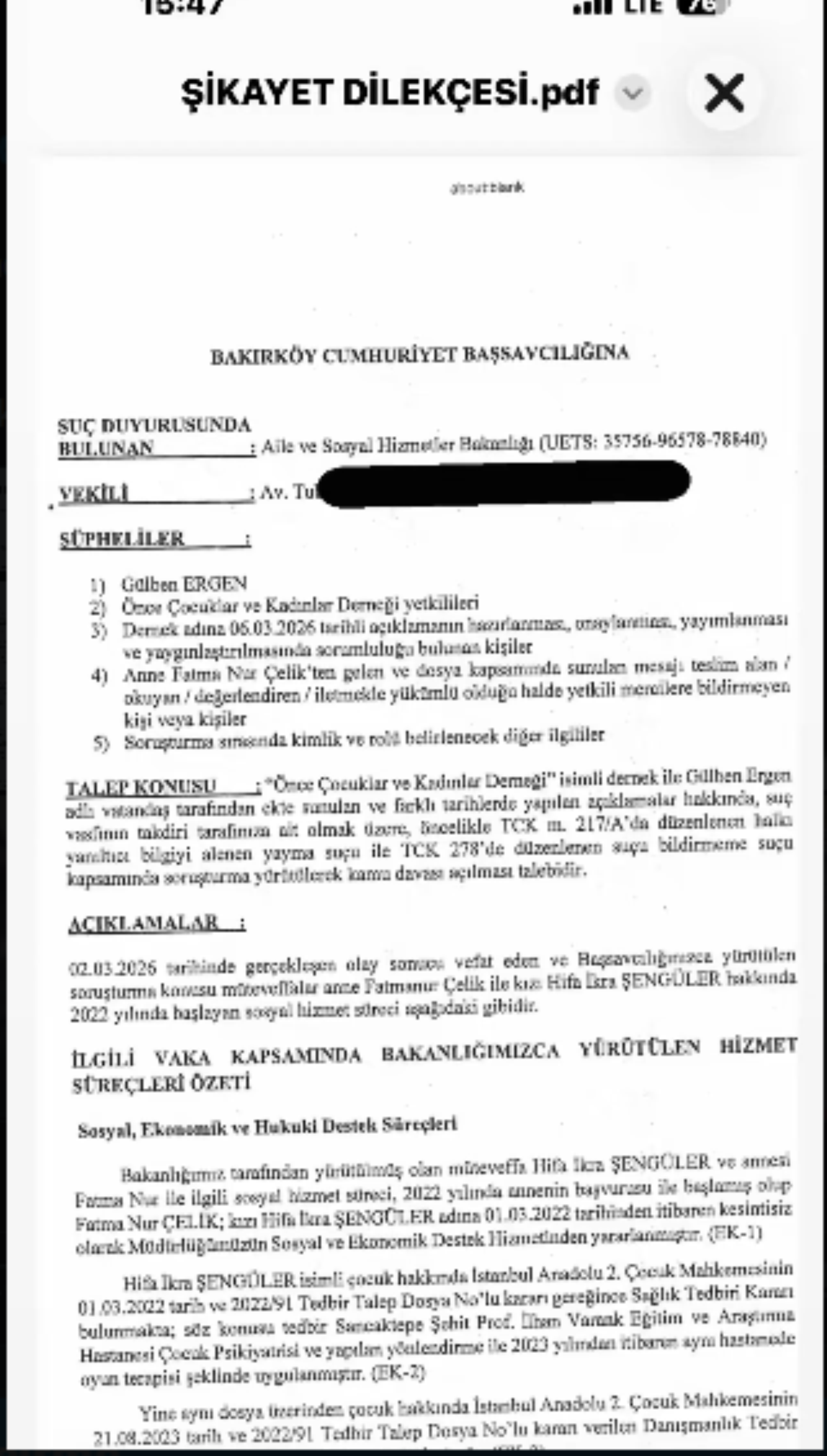 Aile ve Sosyal Hizmetler Bakanlığının şikayeti üzerine