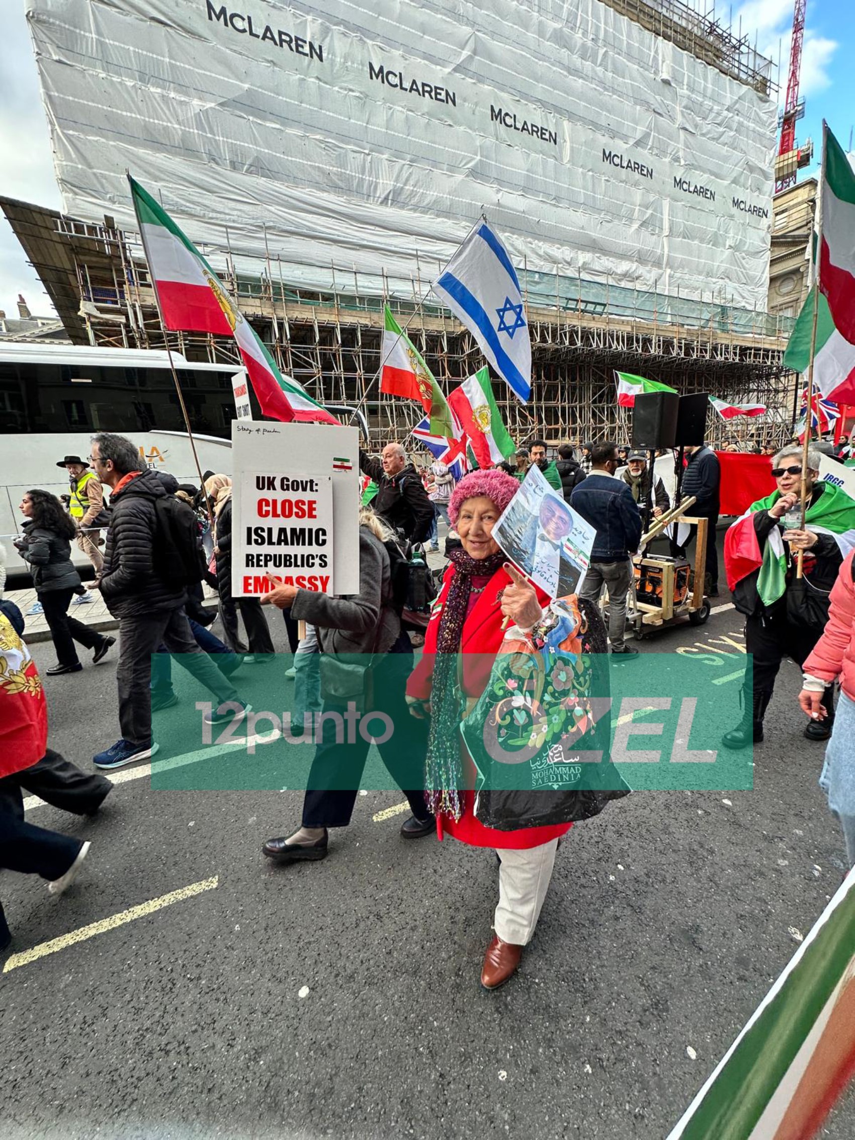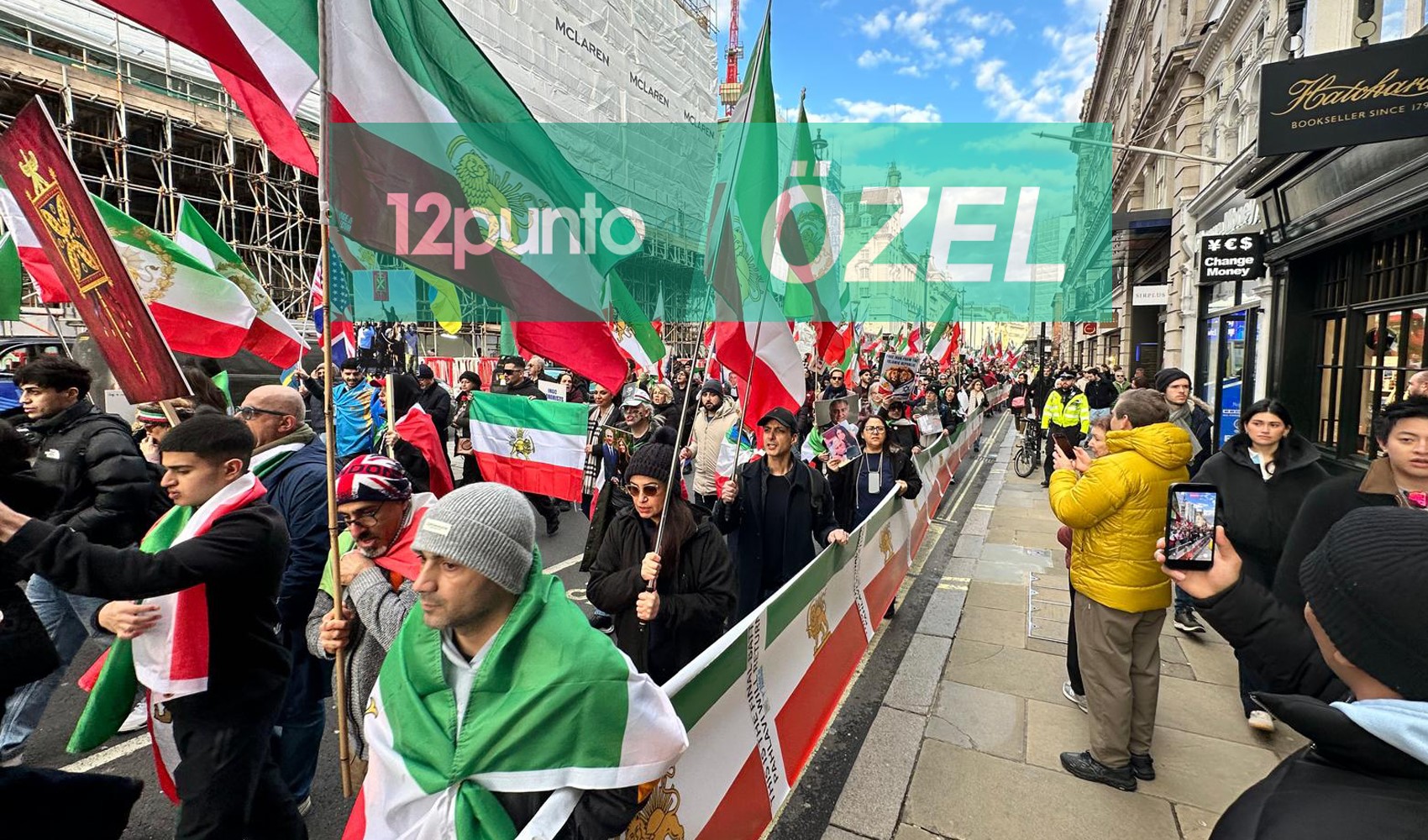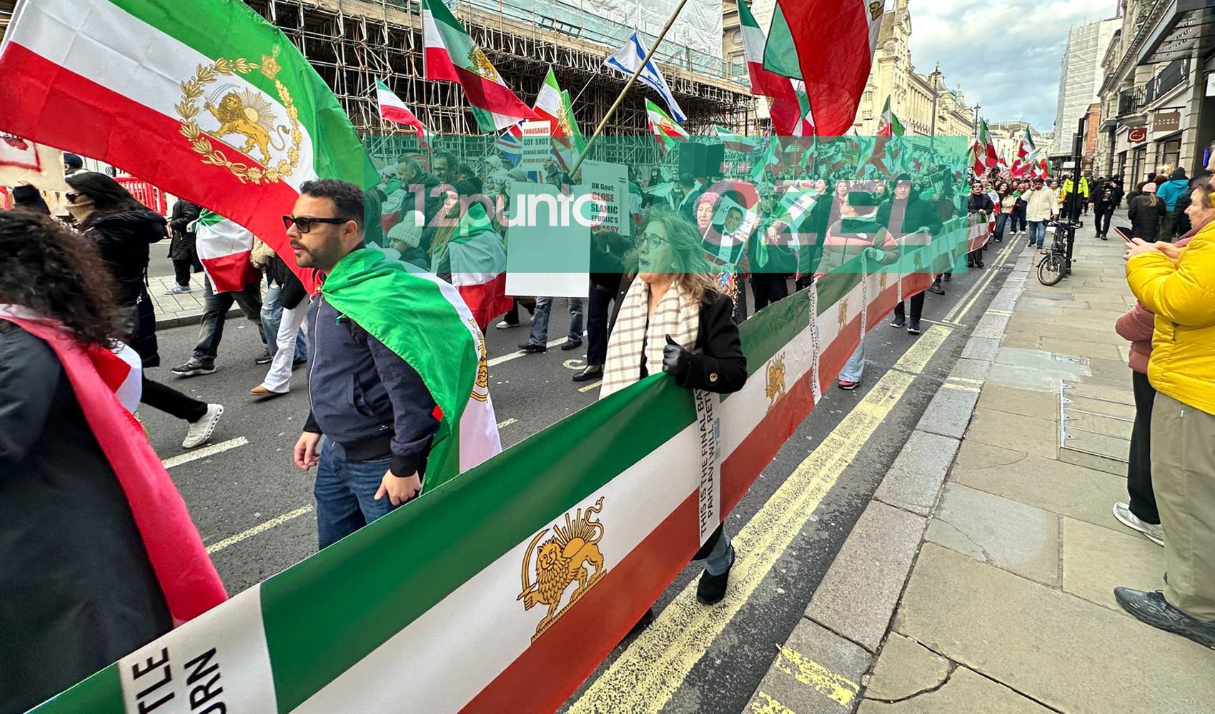 12punto Londra temsilcisi Taner Bildik'in takip ettiği yürüyüşte İranlı muhalifler açtıkları bayraklar ve attıkları sloganlarla boy gösterdi.