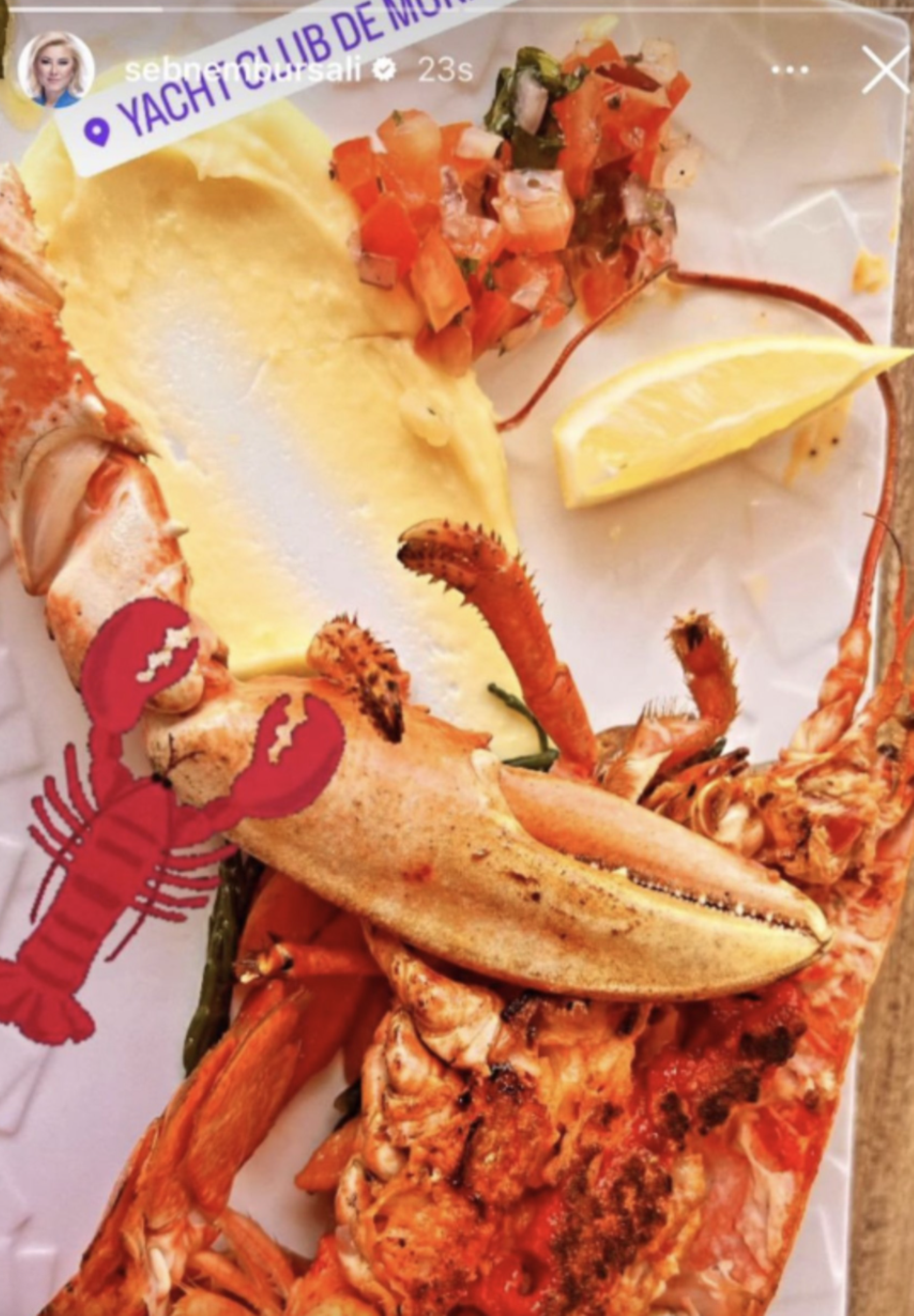 AKP İzmir Milletvekili Şebnem Bursalı, 2024 yılının nisan ayında Monaco Yat Kulübü’nde yediği ıstakozun fotoğrafını paylaşmıştı.