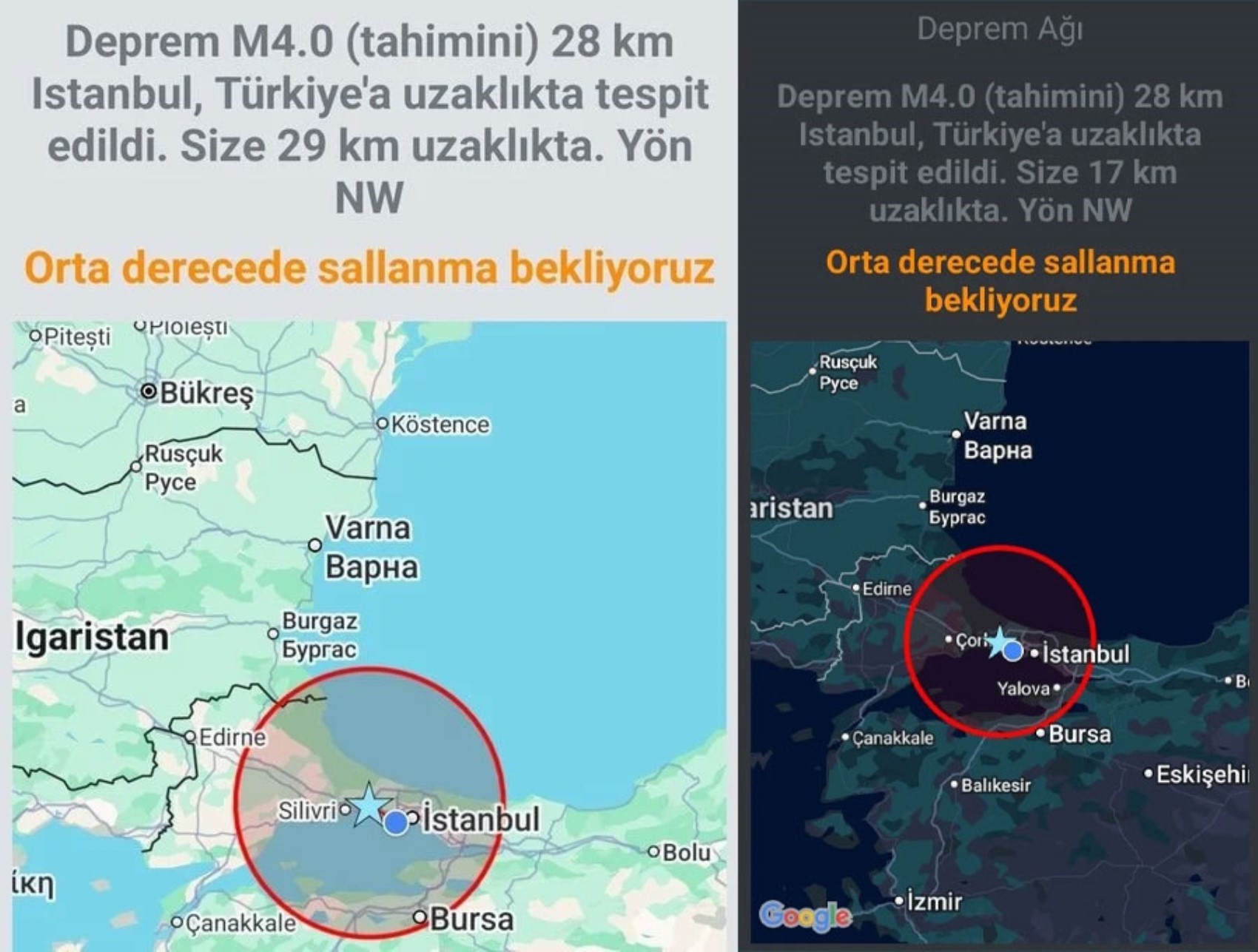 Bildirimlerin akabinde kullanıcılar, “Hisseden oldu mu?” ve “Telefonuma deprem uyarısı geldi ama herhangi bir sarsıntı olmadı” gibi mesajlar paylaştı.