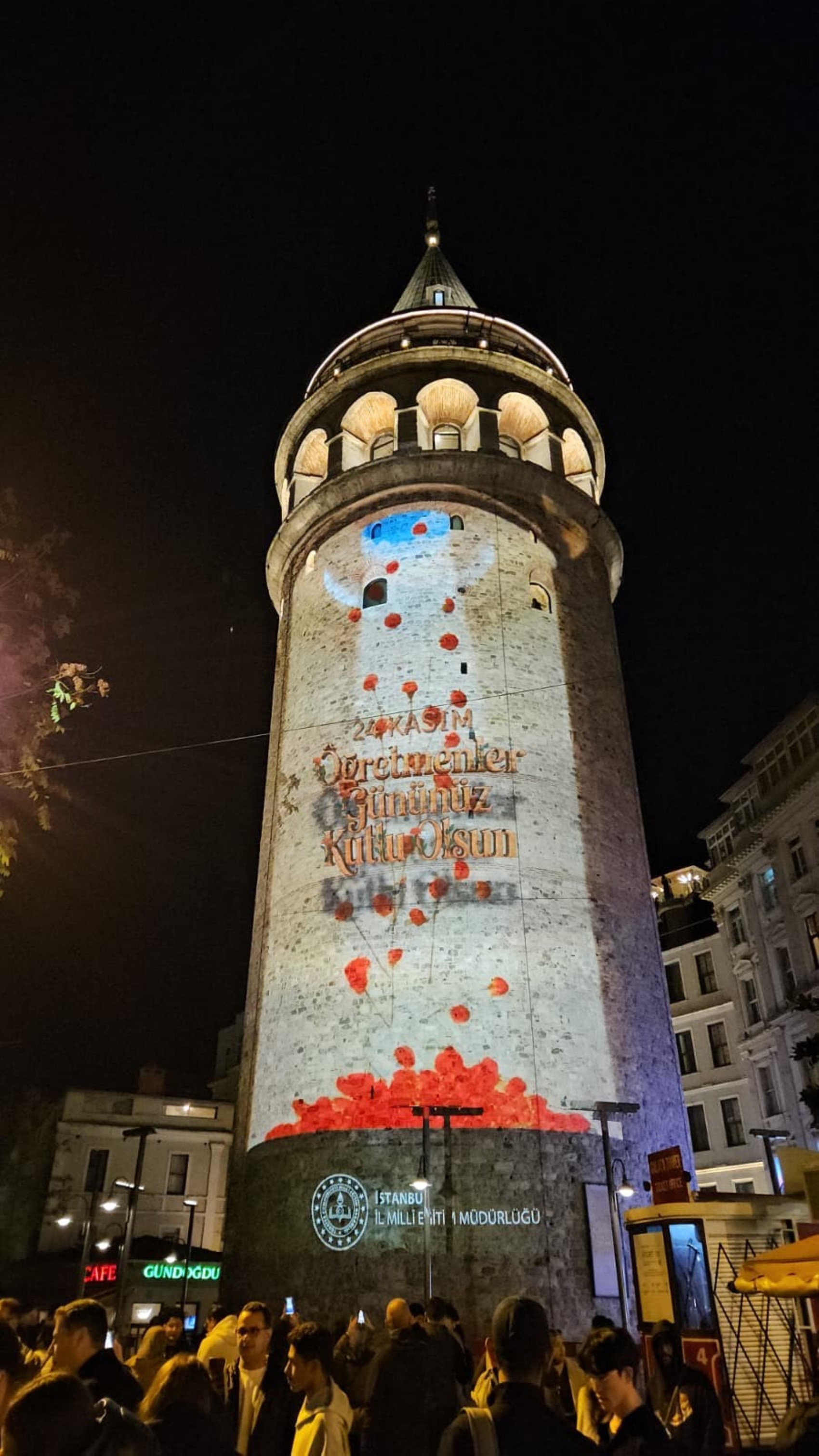 İstanbul'da 24 Kasım Öğretmenler Günü vesilesiyle Galata Kulesi'ne video yansıtıldı. Video yerli ve yabancı turistlerin ilgisini çekti.