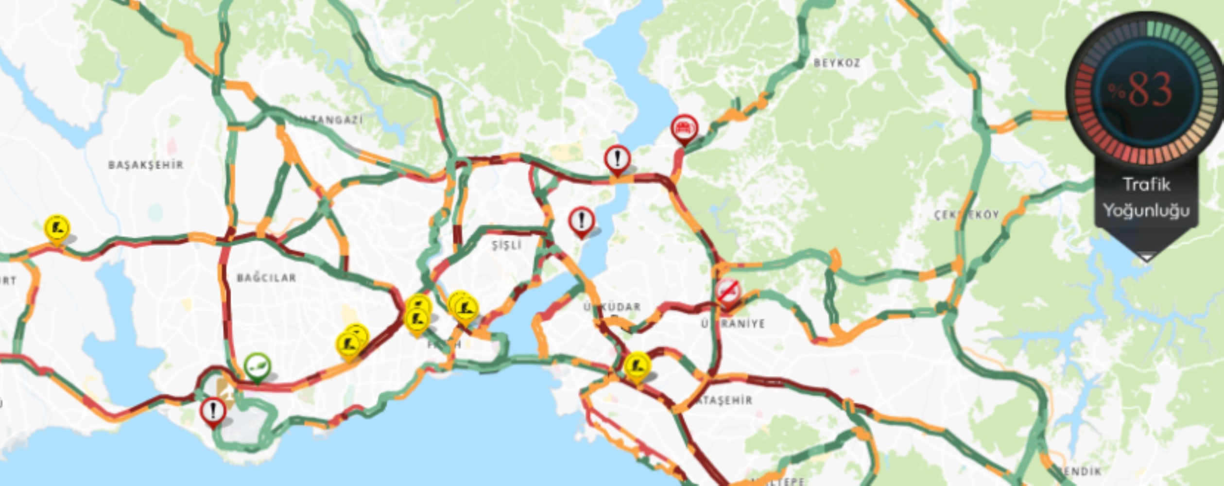 İstanbul Büyükşehir Belediyesi (İBB) Trafik Yoğunluk Haritası'na göre, trafiğin en yoğun olduğu saatlerde yoğunluk oranı yüzde 83'e kadar yükseldi. D-100 karayolu, TEM bağlantı yolları ve köprü geçişlerinde araç kuyrukları kilometrelerce uzadı.