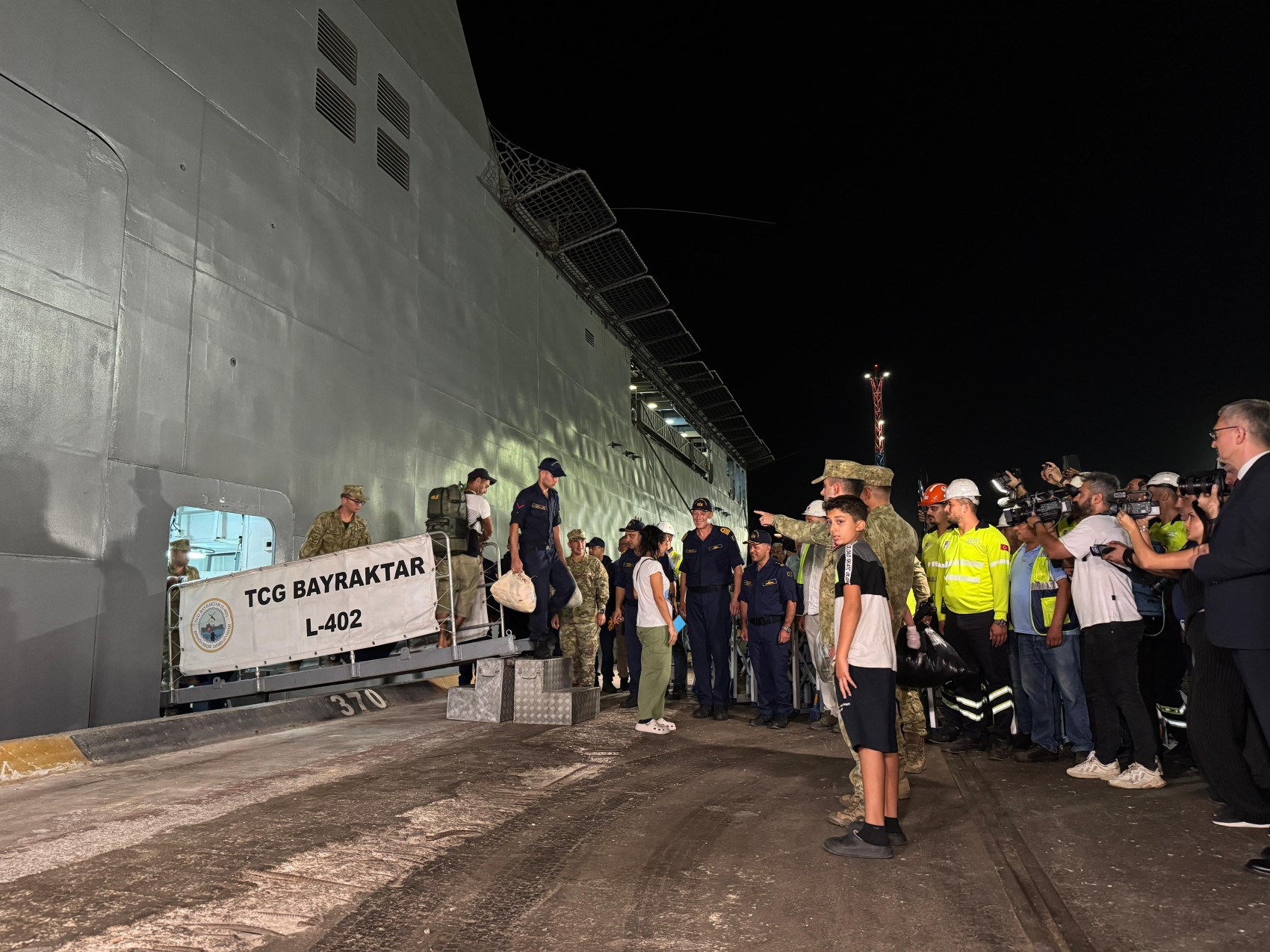 Yola çıkan gemilerden ilki TCG Bayraktar, 558 yolucusuyla Mersin Limanı'na geldi. Gemiden yolcuların tahliyesine başlanırken, diğer gemi TCG Sancaktar'ın da 378 yolcusu ile ilerleyen saatlerde limana ulaşacağı bildirildi.