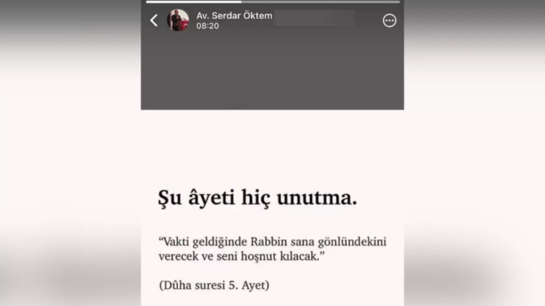 Öktem'in son paylaşımı ortaya çıktı. Öktem paylaşımında Duha Süresi 5'inci ayetine yer verdi.