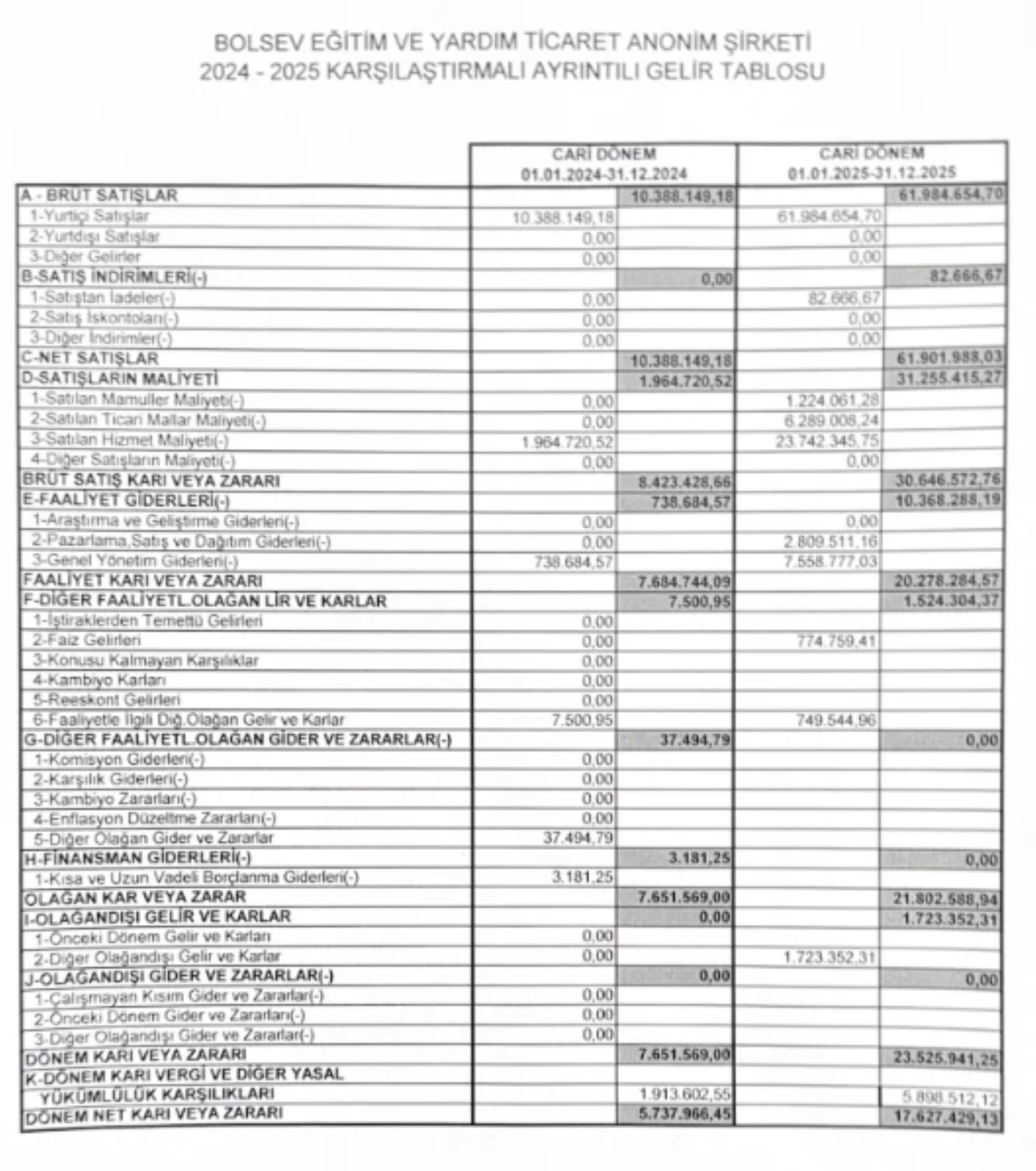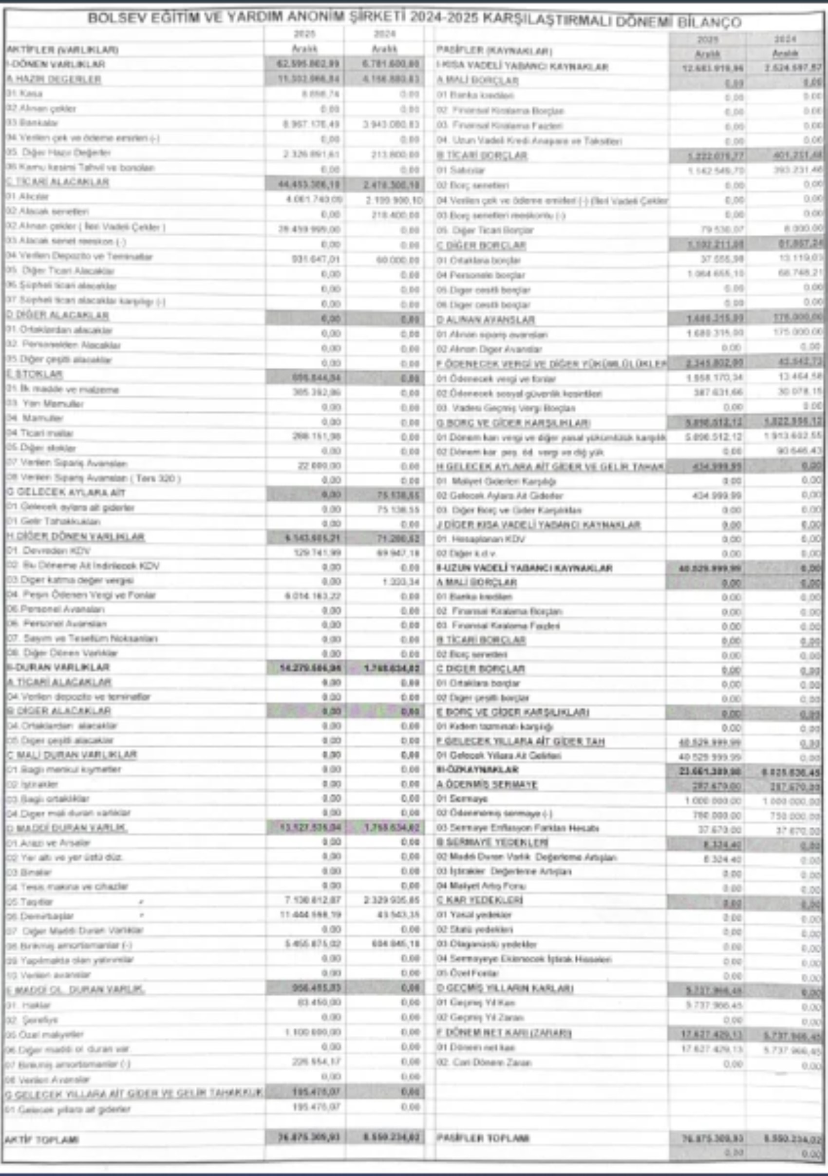 Açıklamamız ekinde, BOLSEV Eğitim ve Yardım Tic. A.Ş.’nin 26.01.2026 tarihinde yeminli mali müşavir tarafından hazırlanan 2024–2025 denetim raporu ve karşılaştırmalı gelir-gider tabloları ayrıntılı olarak sunulmuş olup, vakıf ve şirket hesaplarıyla ilgili olarak bu bilgiler dışında üretilen ve servis edilen her şey tamamen hayal ürünüdür.