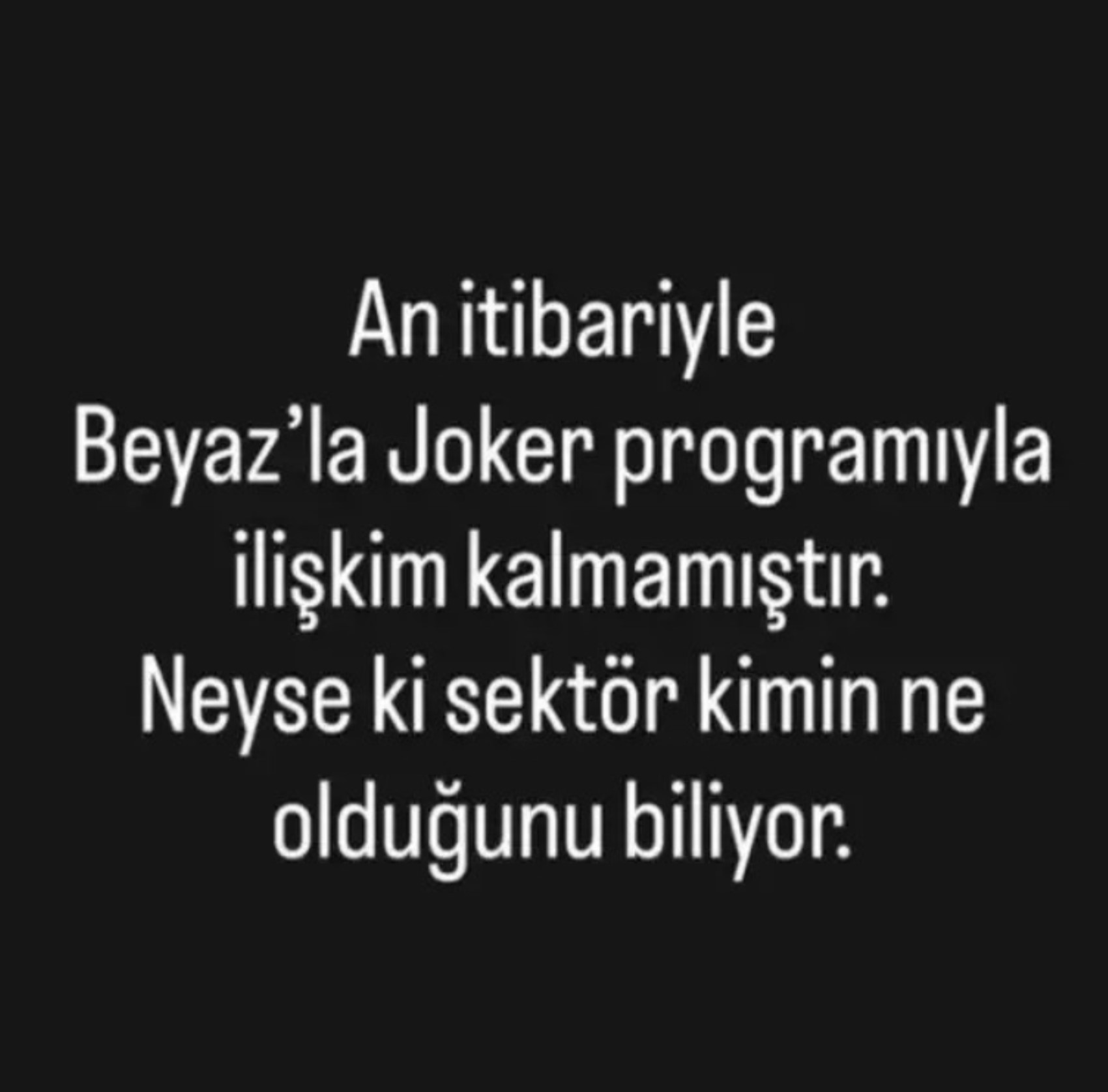 Ayrılığın ardından Ahmet Zafer Demirci tarafından sosyal medya hesabından bir açıklama yapıldığı aktarıldı. Paylaşımda, “An itibariyle Beyaz’la Joker programıyla ilişkim kalmamıştır. Neyse ki sektör kimin ne olduğunu biliyor” ifadelerine yer verildi.