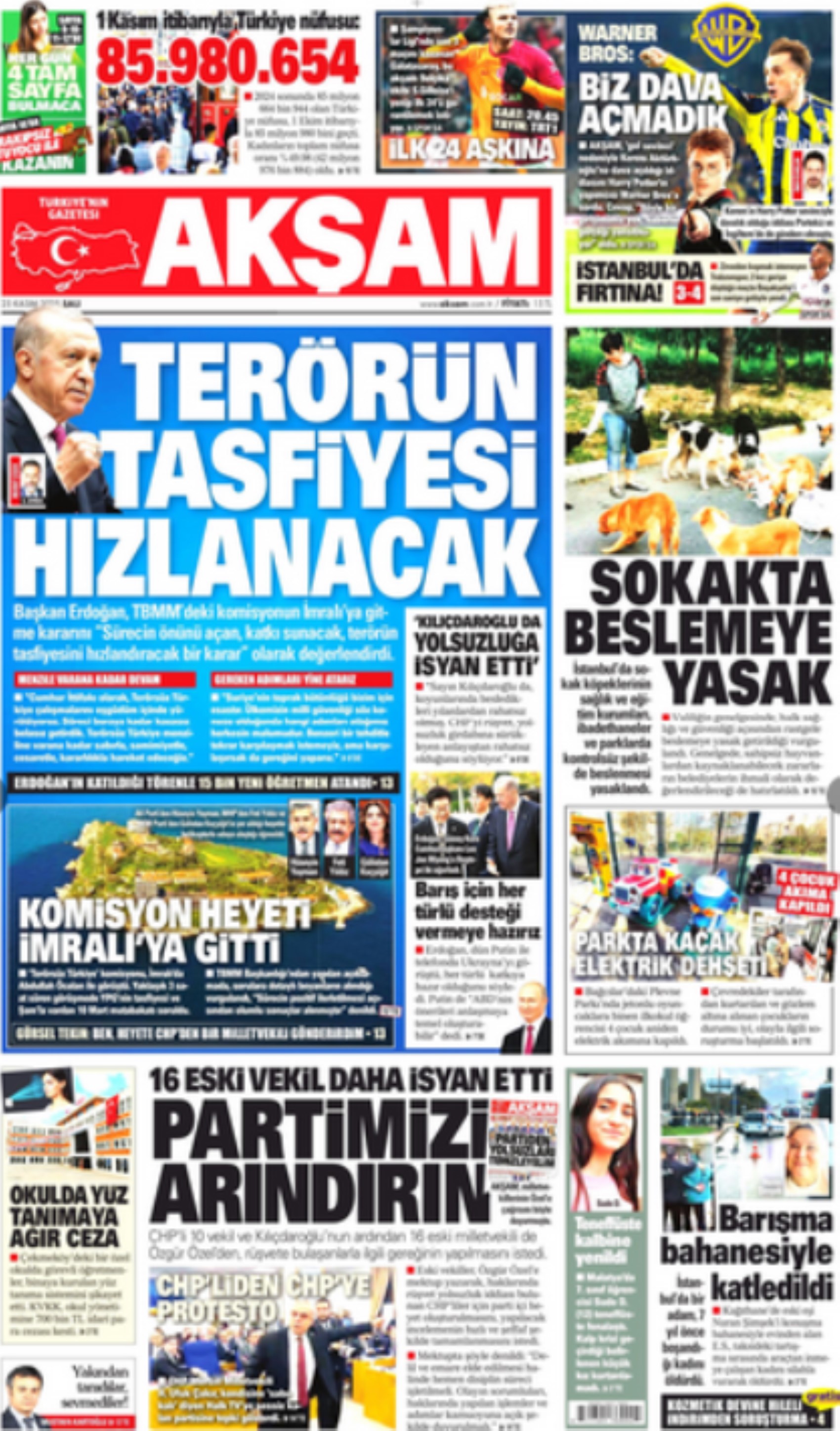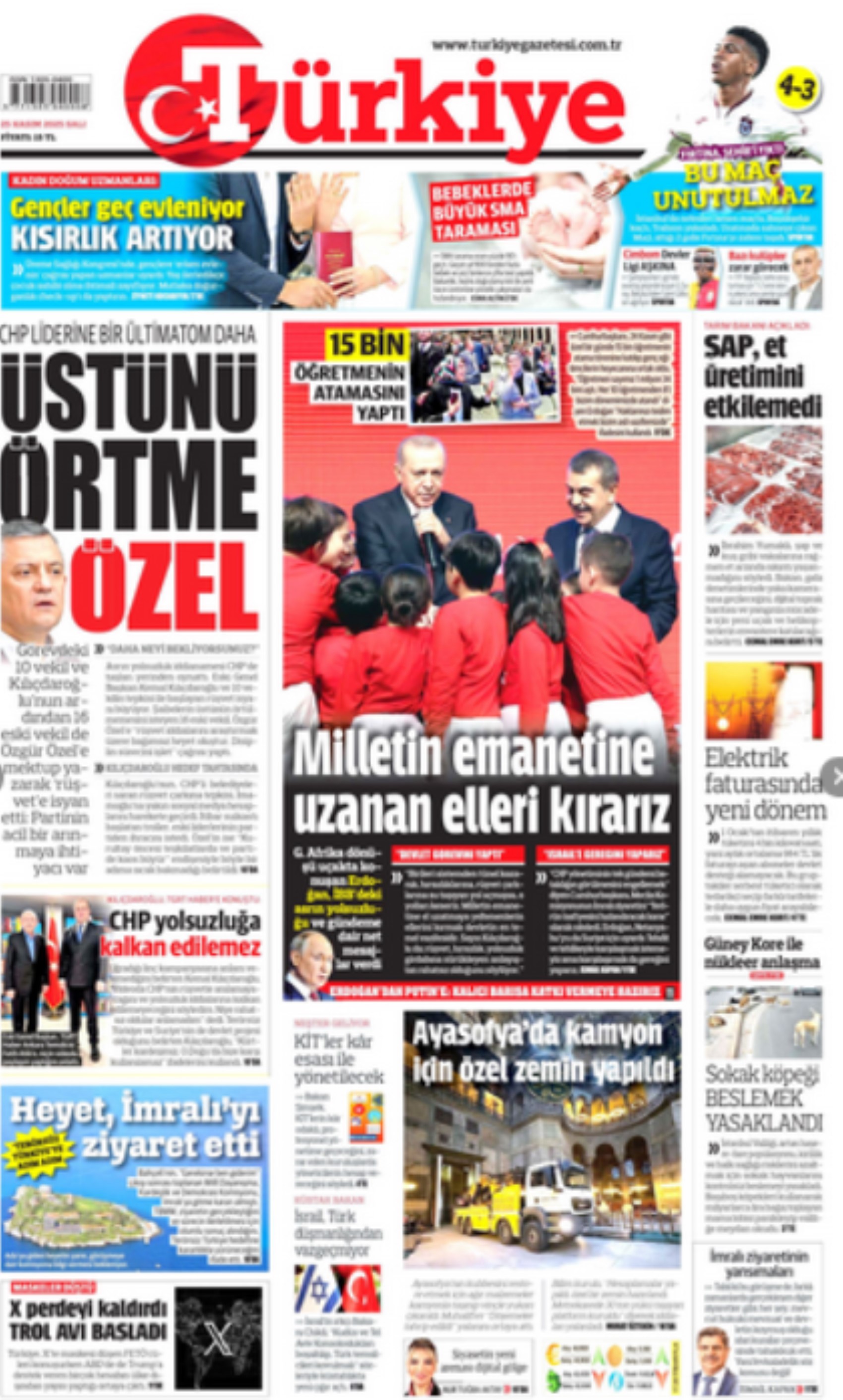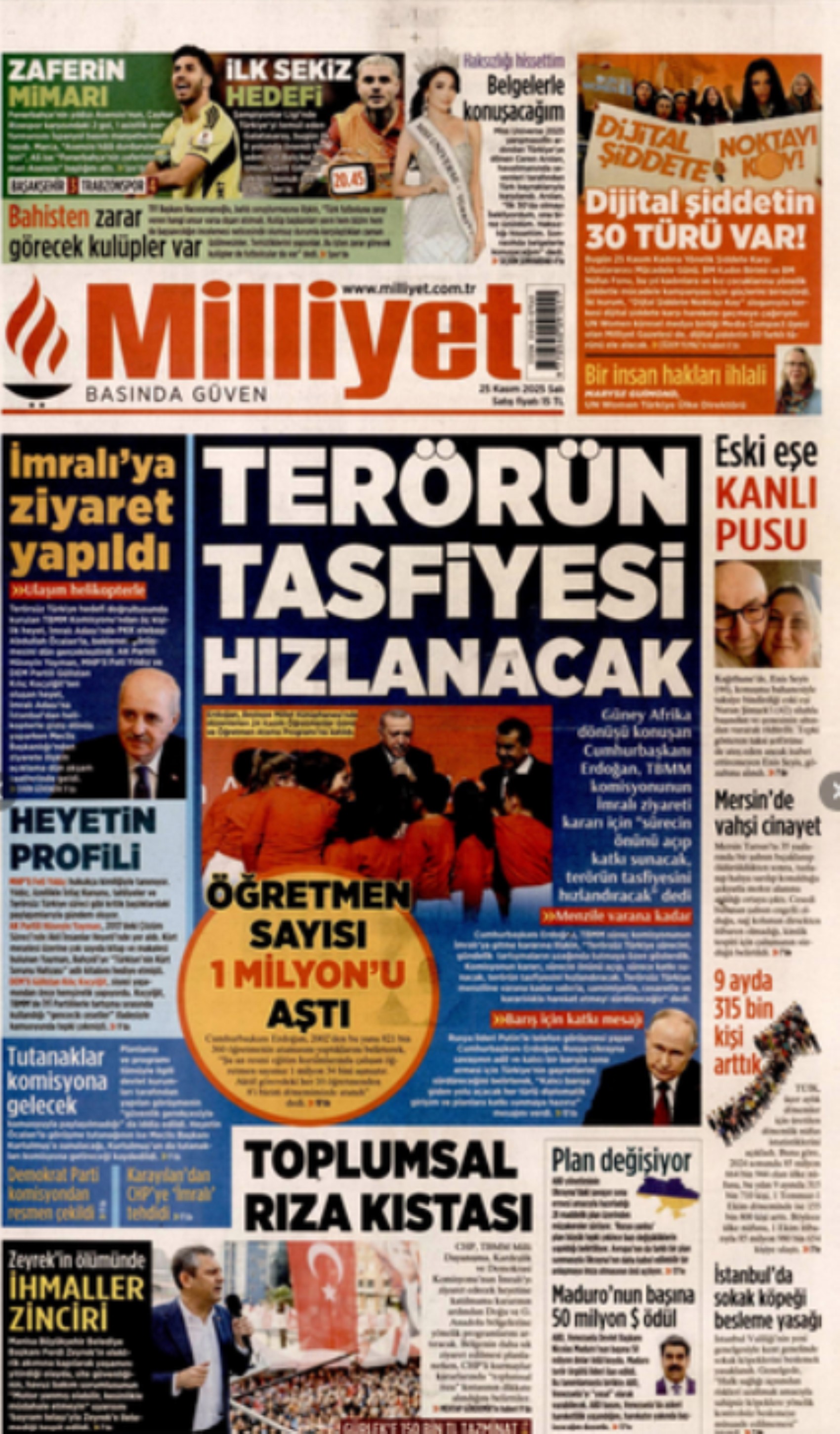 İmralı Süreci’nde oluşturulan komisyonun, bölücü örgüt PKK'nın elebaşı Abdullah Öcalan ile görüşme yapılmasına yönelik kararı, iktidara yakın basılı gazetelerde geniş yer bulmadı. AKP, MHP, DEM Parti, TİP ve EMEP’in oylarıyla alınan komisyon kararı, 21 Kasım’da açıklanmasına rağmen ertesi gün gazetelerin büyük çoğunluğunun manşetlerine yansıtılmadı. Bazı gazetelerde ise karar yalnızca küçük kutu haberlerle aktarıldı.