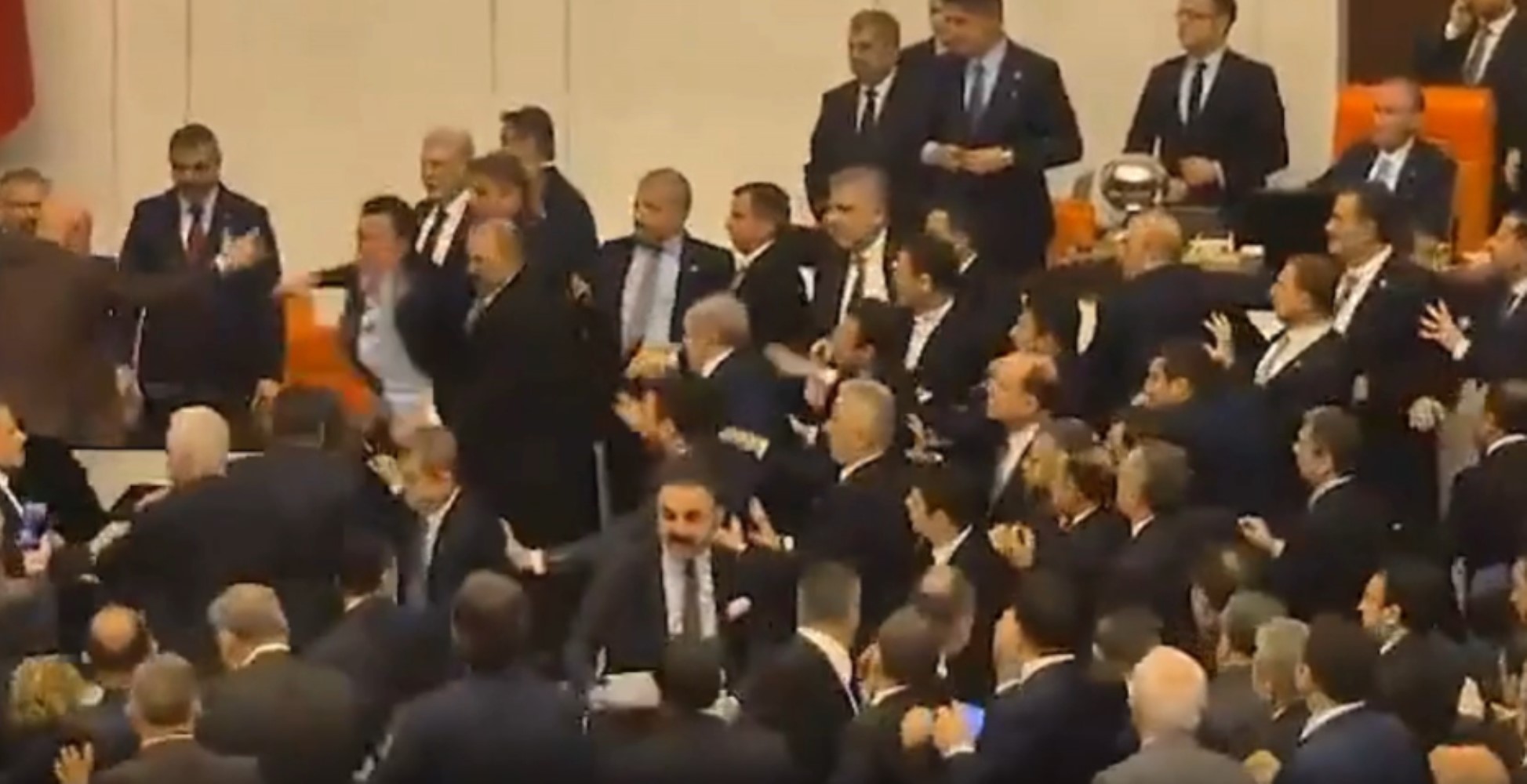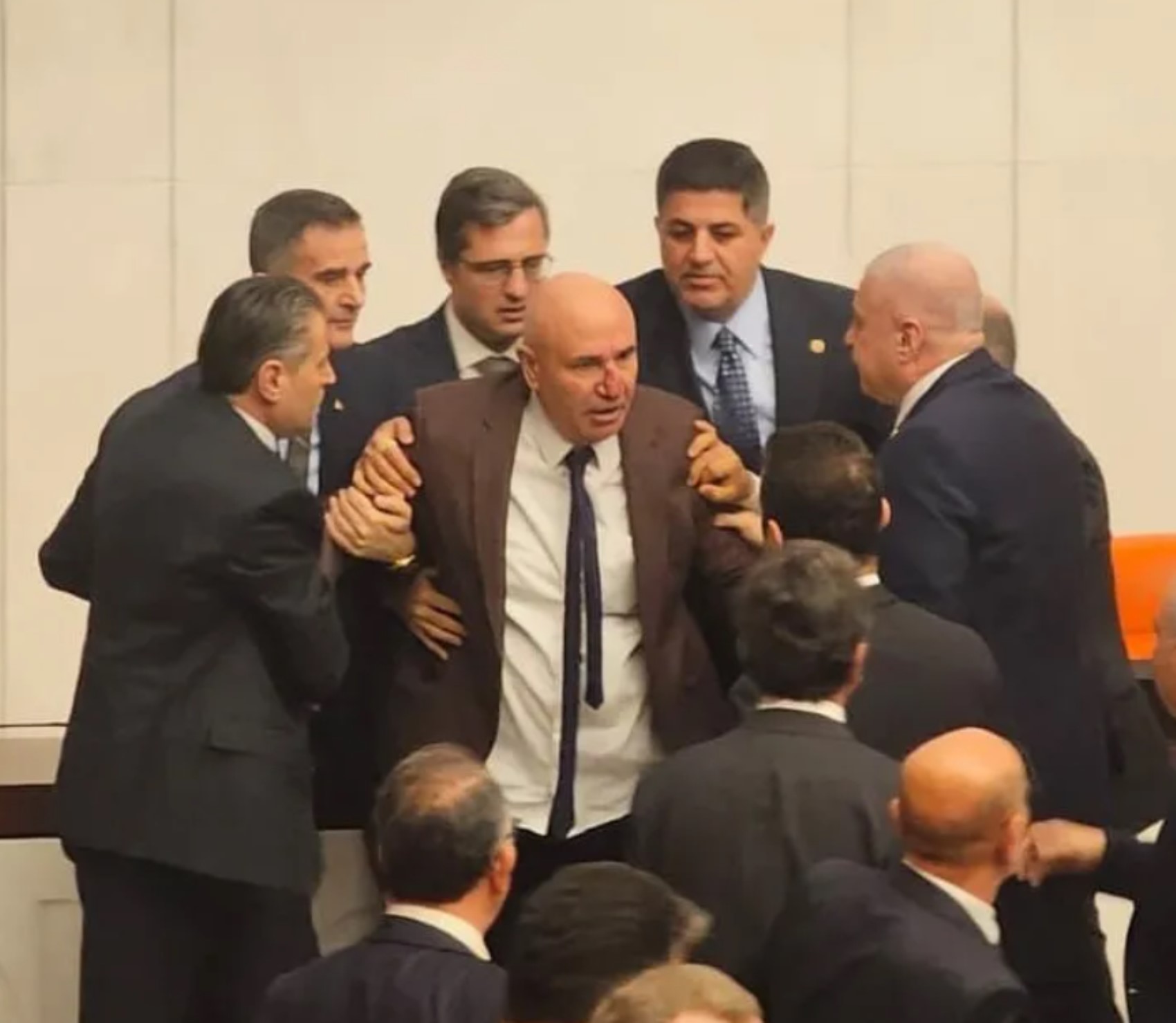 CHP'lilerin kürsüyü bırakmaması üzerine çıkan kavgada AKP'li Osman Gökçek CHP'li Mahmut Tanal'a yumruk attı.