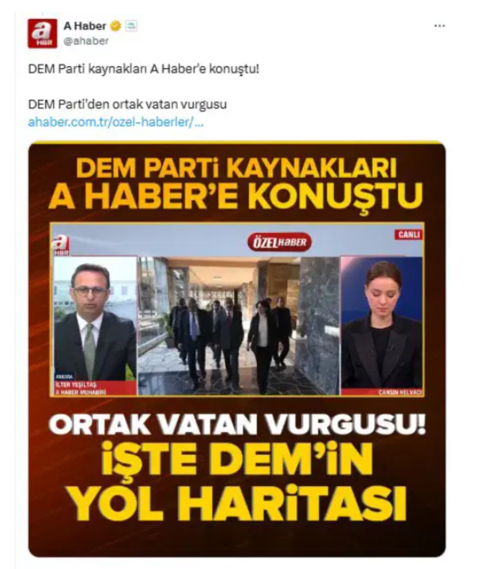 PKK’nın kendisini feshettiğini duyurmasının ardından başlayan yeni süreçle birlikte siyasette dikkat çeken gelişmeler yaşanıyor. İktidara yakınlığıyla bilinen A Haber’de yayınlanan bir haberde, DEM Parti kaynaklarının açıklamalarına yer verildi.