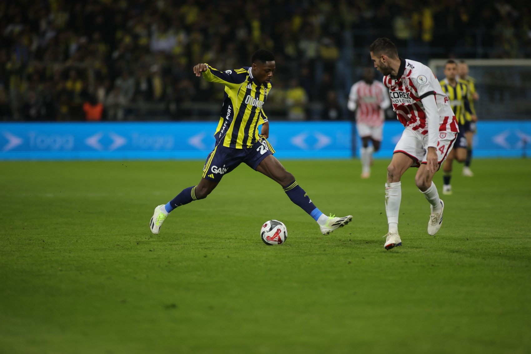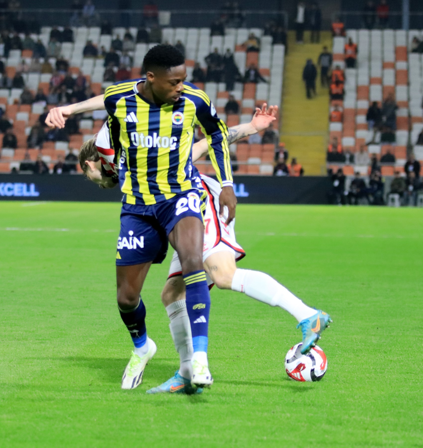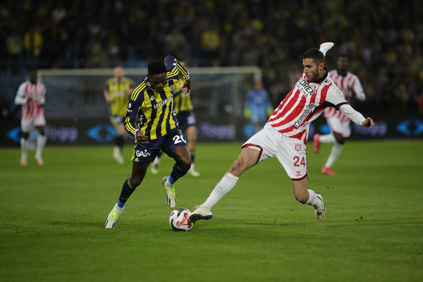 34. dakikada Fenerbahçe gole çok yaklaştı. Jhon Duran'ın ceza sahası dışından vuruşunda kaleci Okan'ın da güçlükle müdahale ettiği top üst direkten oyun alanına geri döndü.